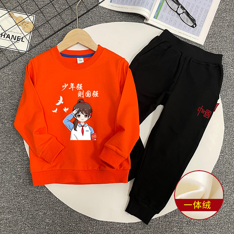 • 기모-경례 젊은 강한 여성-오렌지 + 블랙 (바지 프린트 cHiNA