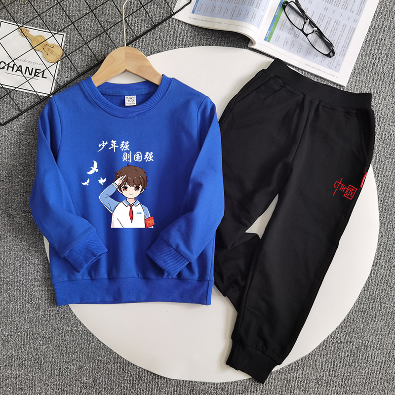 • 기모-경례 젊은 강한 남자-블루 + 블랙 (바지 프린트 cHiNA