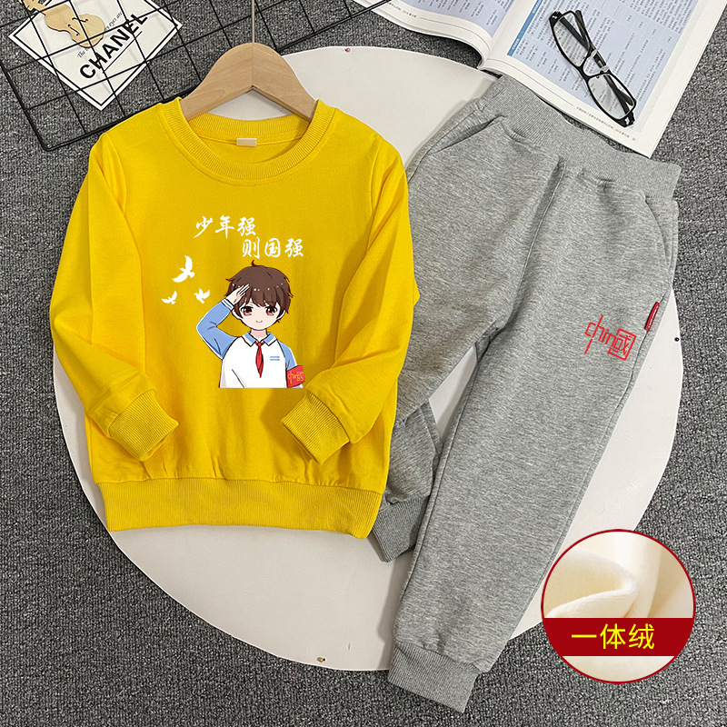 • 기모-경례 젊은 강한 남자-황 + 회색 (바지 프린트 cHiNA