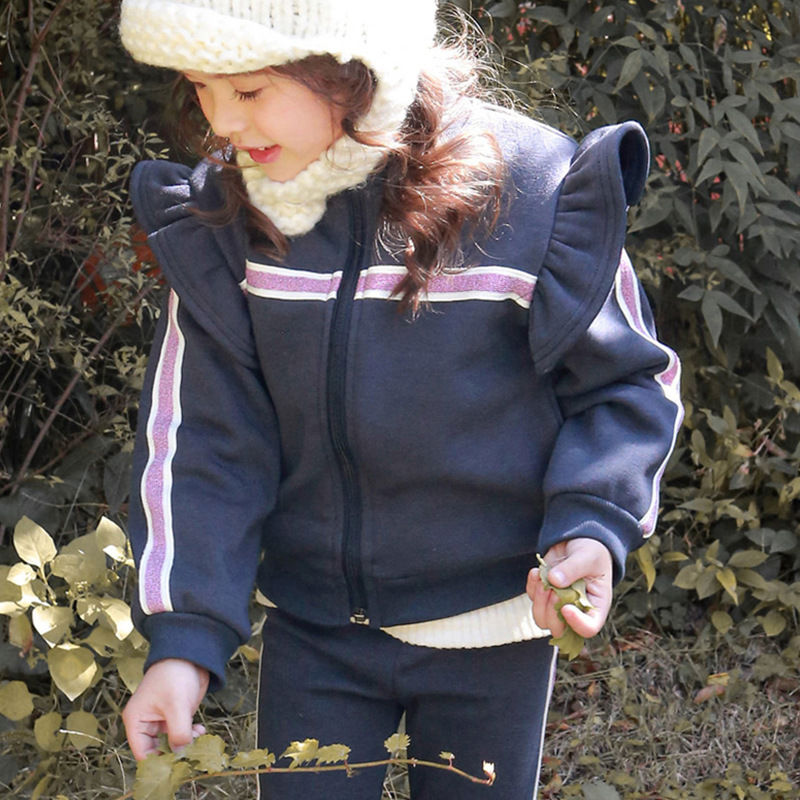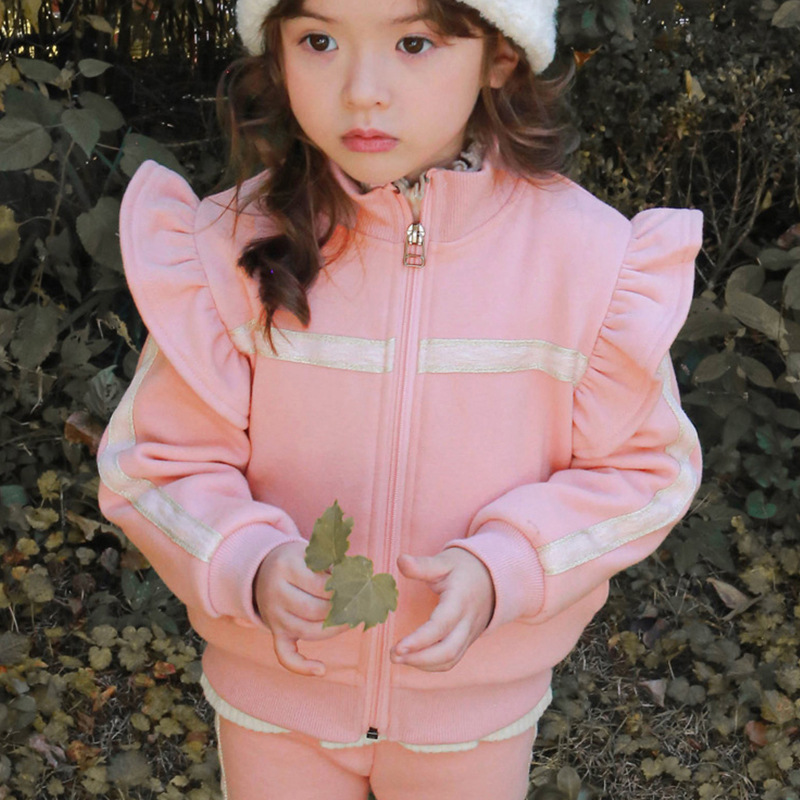 2025 겨울 딸기 샌드라 한국 아동복 여아용 패셔너블한 프릴 장식 플리스 스웨트셔츠 캐주얼 재킷 재고 있음