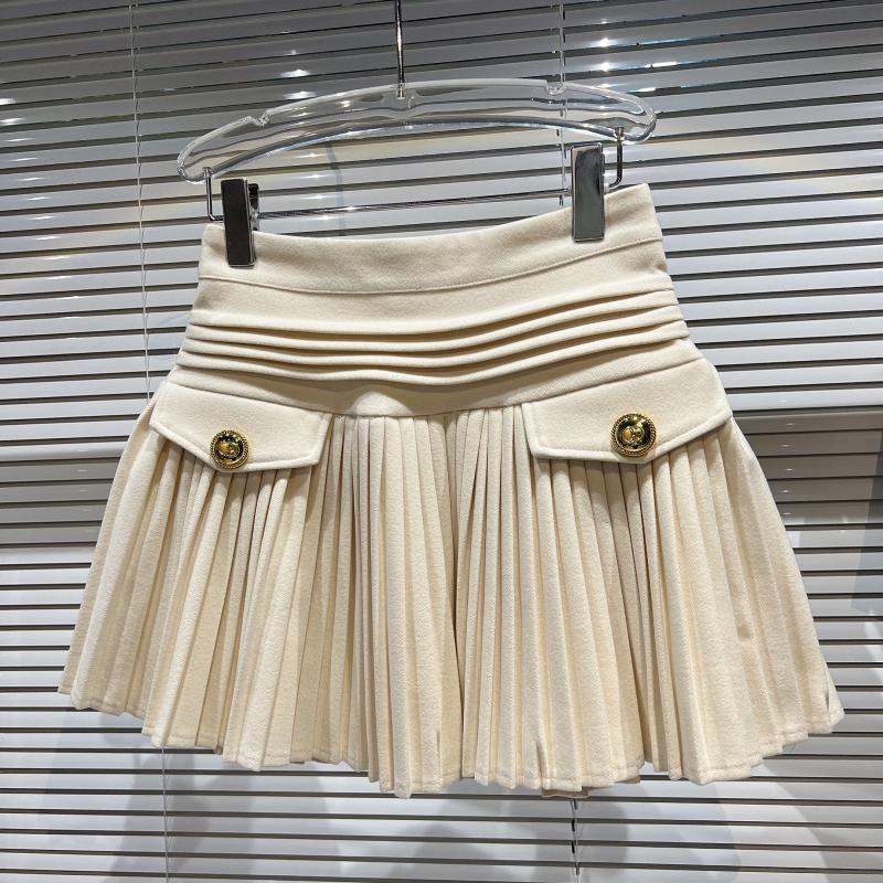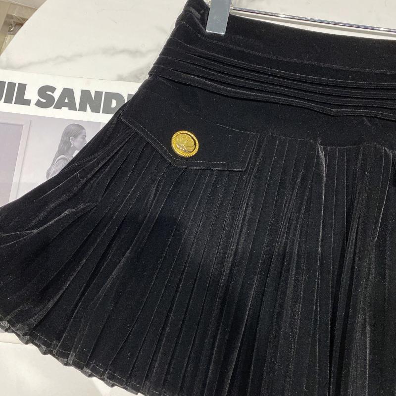 소녀의 인터넷 연예인 같은 스타일 샤넬 스타일 메탈 버클 더블 포켓 골드 벨벳 플리츠 스커트 한국 스타일 단색 미드 빅 어린이 스커트
