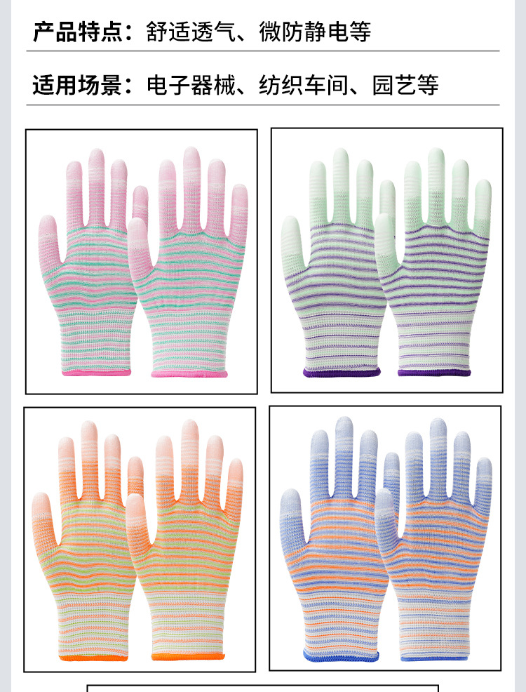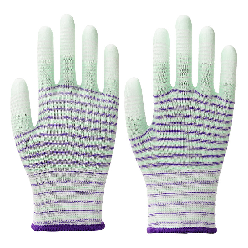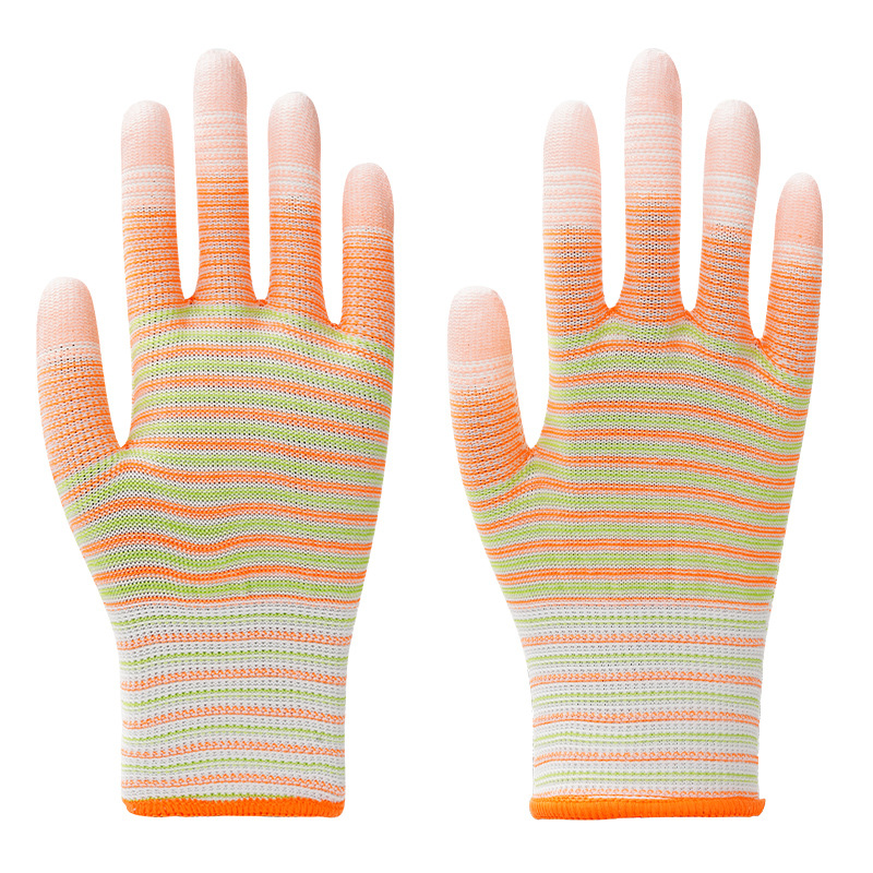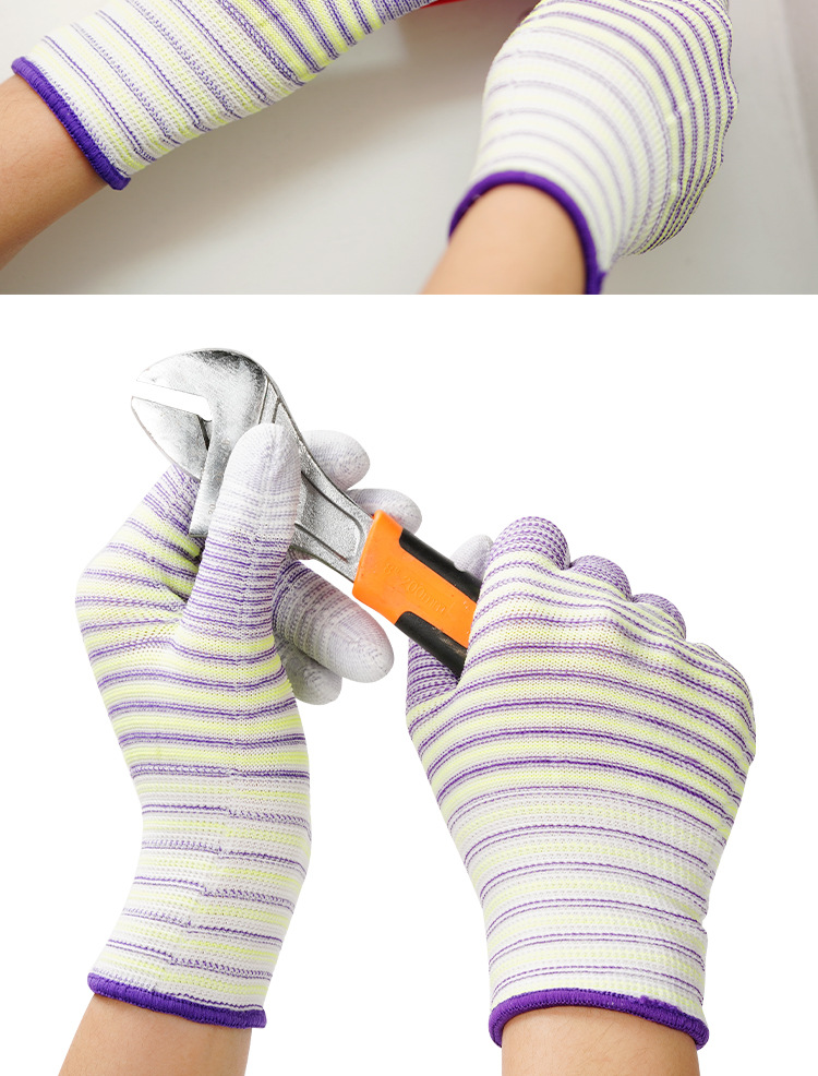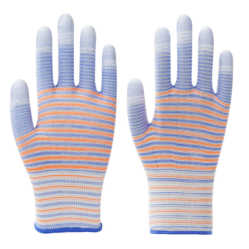 접착 얇은 내마모성 전자 공장 작업 내구성 노동 보호 장갑 도매 미끄럼 방지 장갑 PU 손가락 코팅 얼룩말 패턴