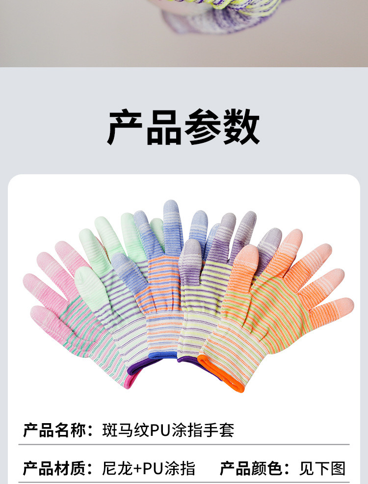 접착 얇은 내마모성 전자 공장 작업 내구성 노동 보호 장갑 도매 미끄럼 방지 장갑 PU 손가락 코팅 얼룩말 패턴스토어 가기