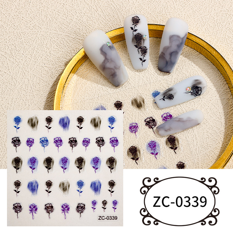 Zhengxiang 그물 빨간 장미 레이저 나비 DIY 네일 스티커 도매 3D 컬러 다이아몬드 네일 스티커 INS 모조 다이아몬드 네일 스티커스토어 가기