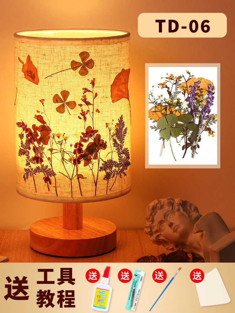 양각 테이블 램프 수제 DIY 창조적 인 말린 꽃 만들기 소재 여성의 날 퍼즐 말린 꽃 테이블 램프 침대 옆 램프 장식스토어 가기