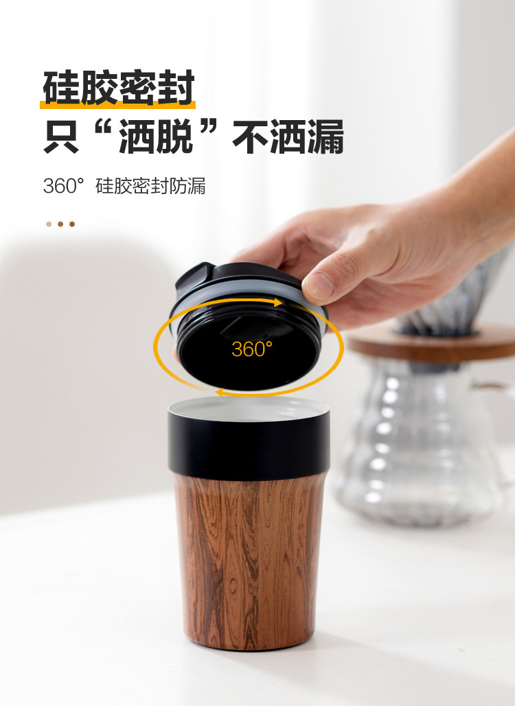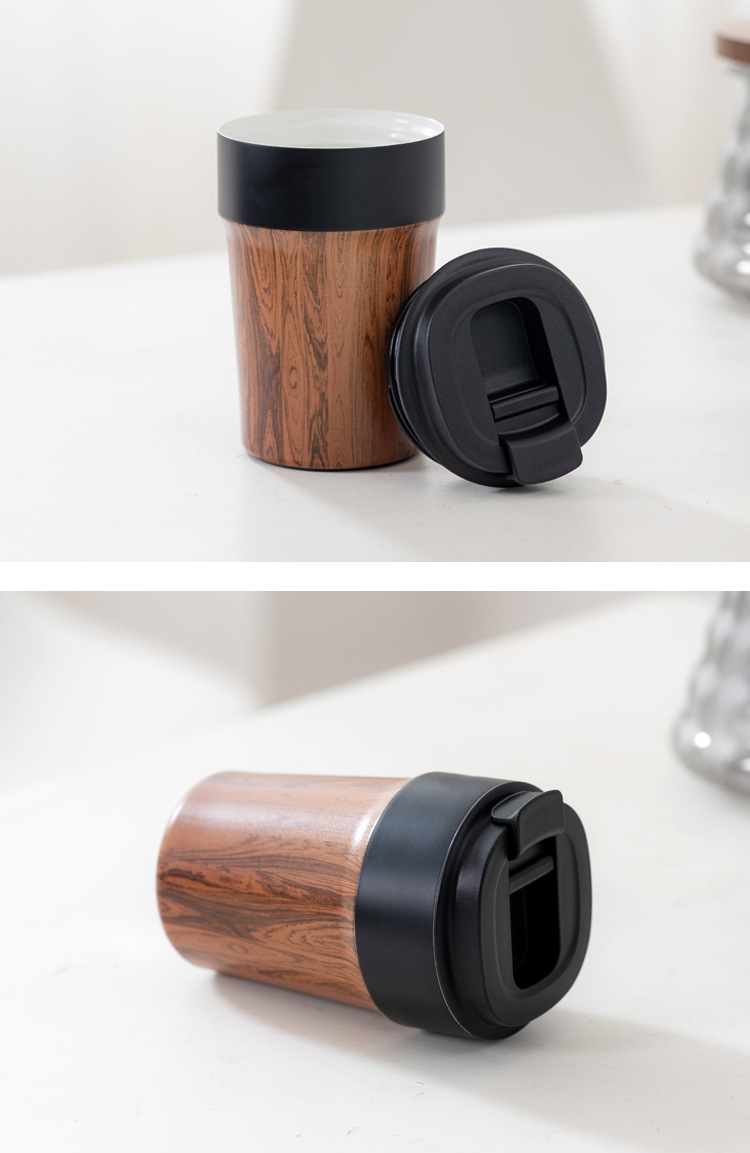 인기 판매 중인 커피컵 보온병 나무결 컵 정교한 휴대용 컵 내부 도자기 코팅 커피 야외용 컵 휴대용 테이크아웃 컵