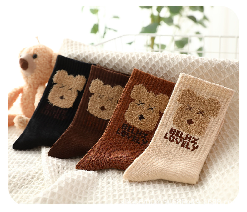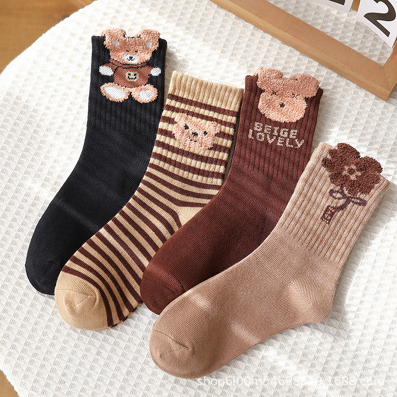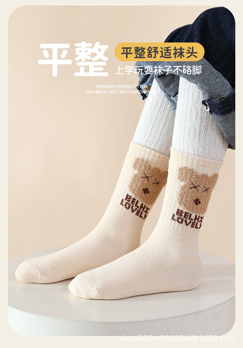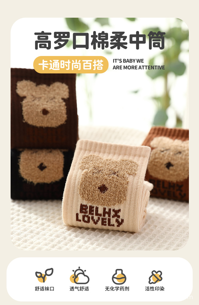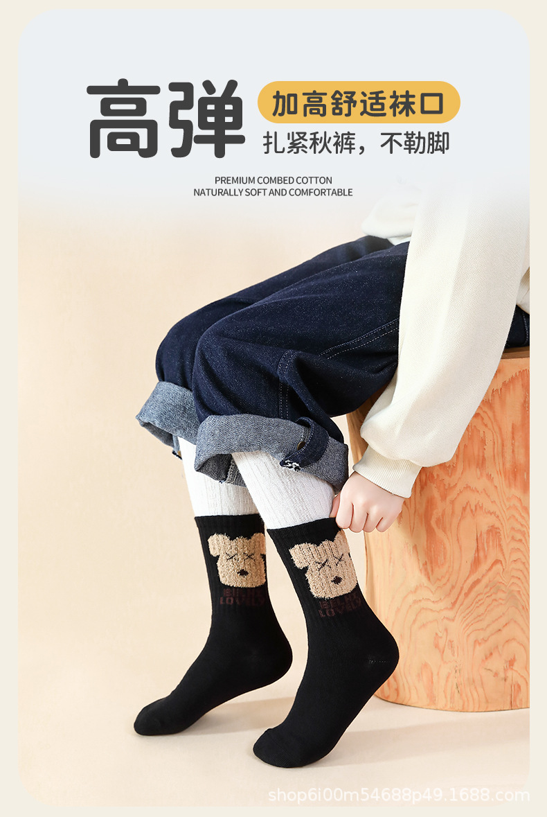 어린이 양말 가을과 겨울 소년과 소녀의 중간 송아지 양말 따뜻한 어린이 양말 귀여운 만화 두꺼운 아기 면화 양말