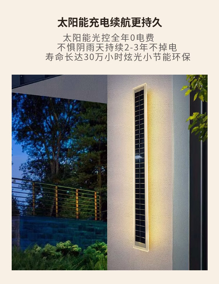 태양 가정 인체 유도 긴 스트립 벽 램프 미니멀리스트 방수 라인 램프 경치 좋은 안뜰 별장 정원 램프