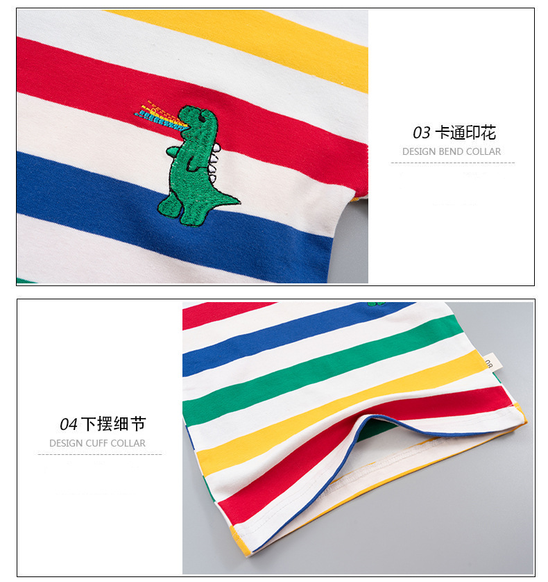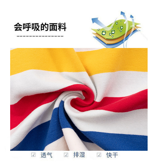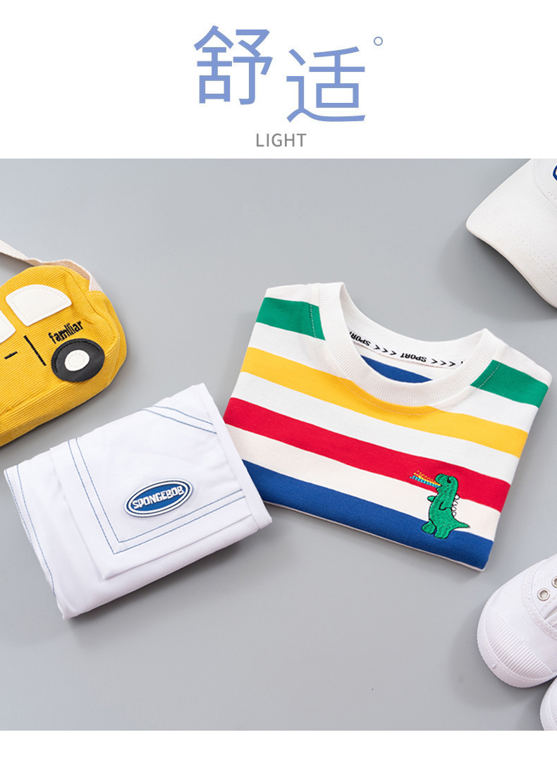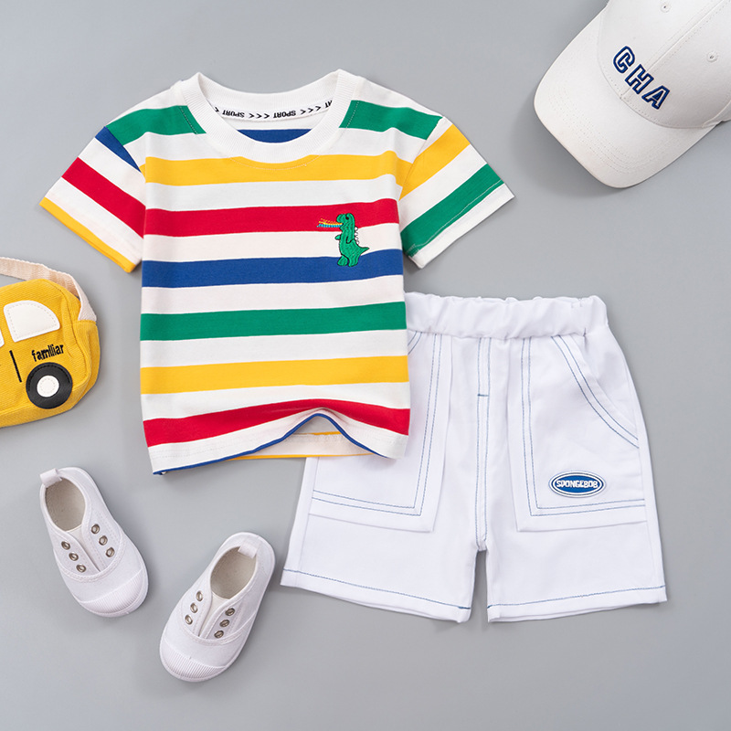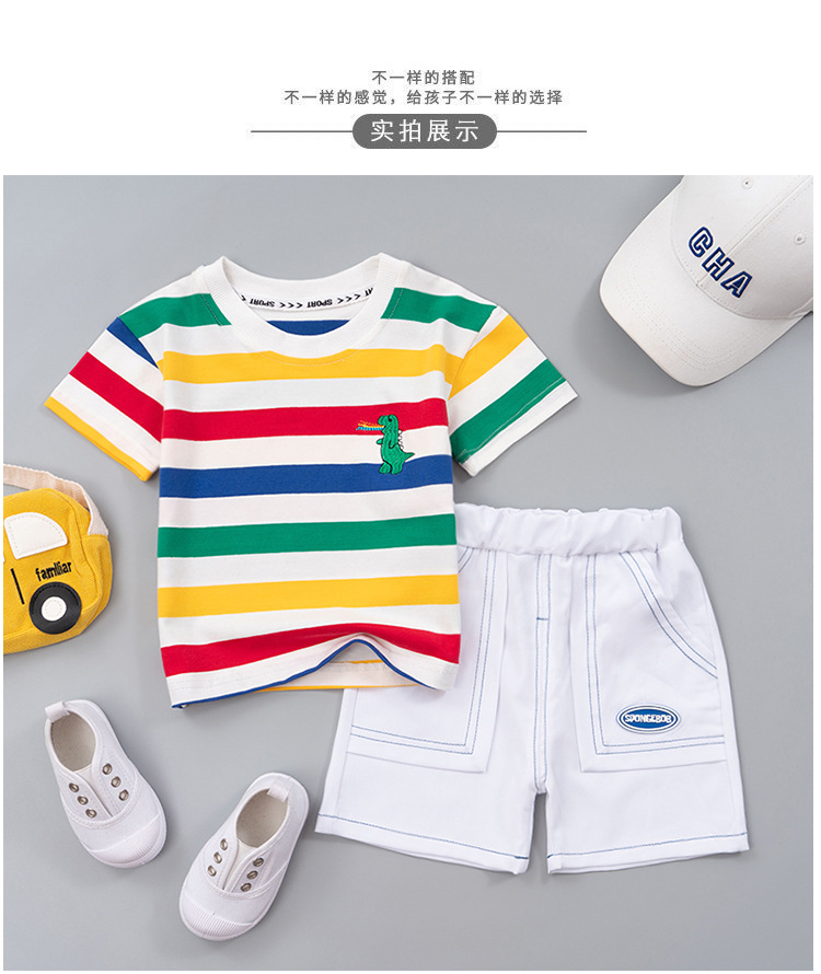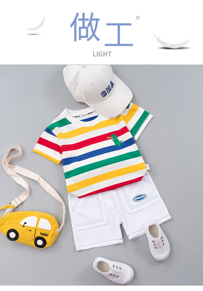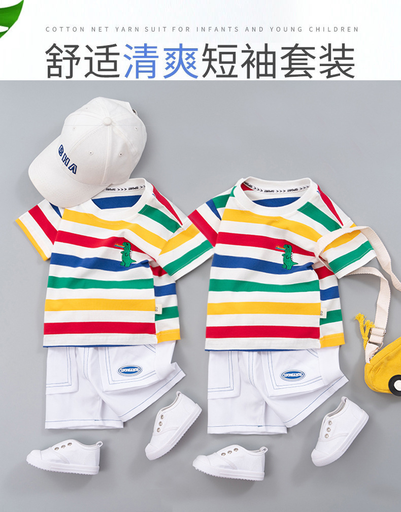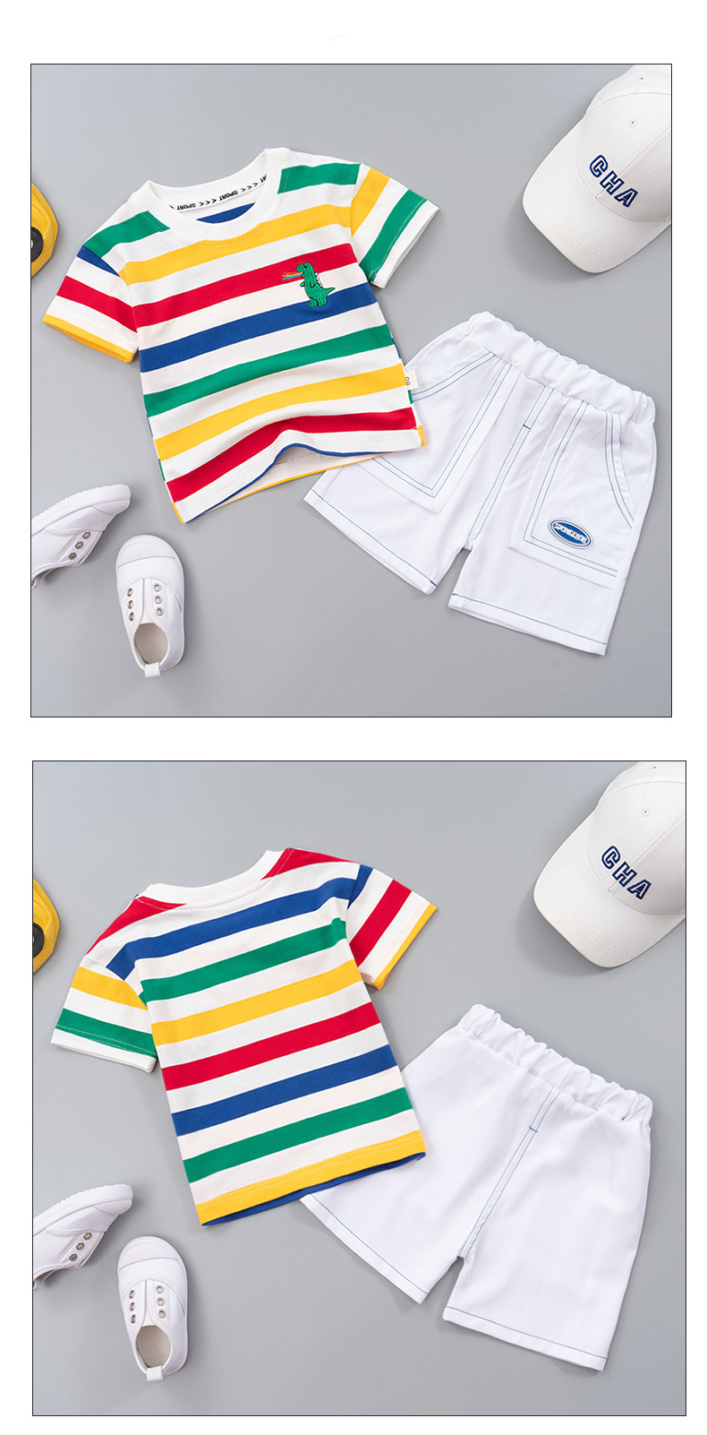 어린이 여름 스트라이프 코튼 티셔츠 세트 소년과 소녀 반팔 반바지 투피스 귀여운 레인보우 스트립