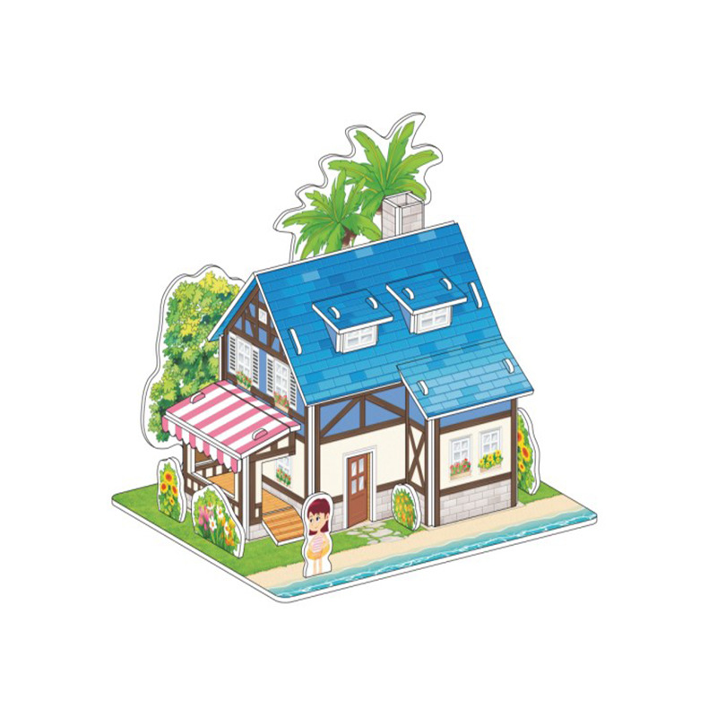 국경 간 스몰 사이즈 3 차원 직소 퍼즐 유치원 작은 선물 수제 집 모델 3-6 세 소년 소녀 조기 교육