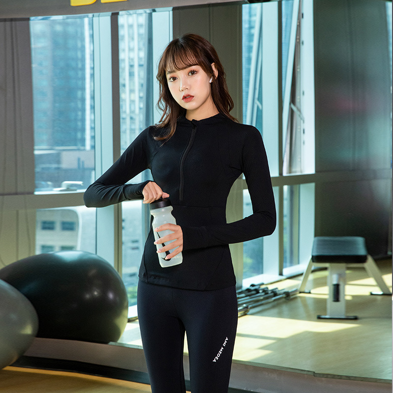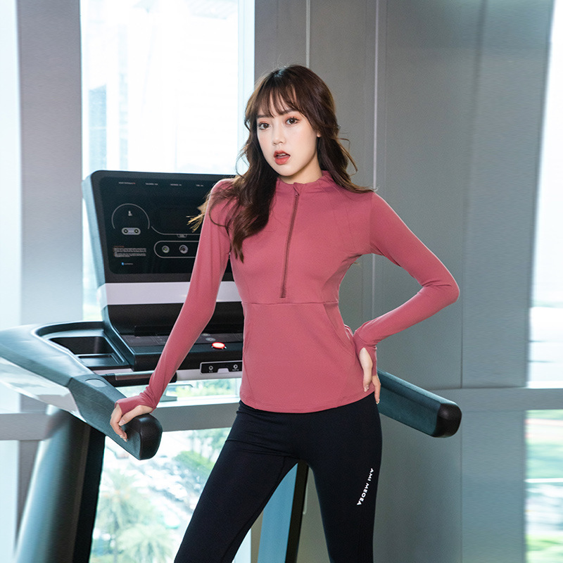 신요가 옷 하프 지퍼 코트 여성 포켓 긴팔 속건 스포츠 피트니스 탑 [헤어 세대]]