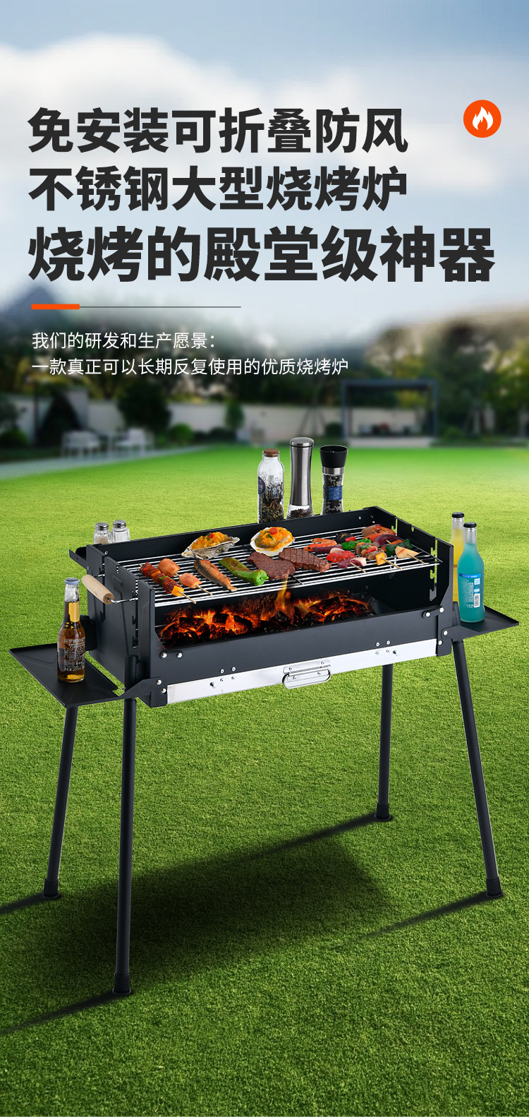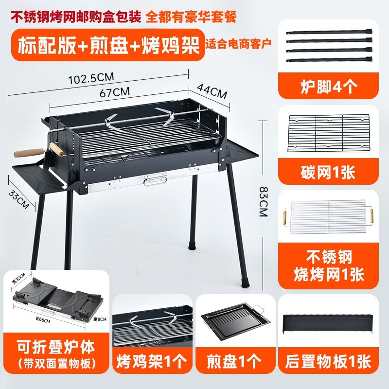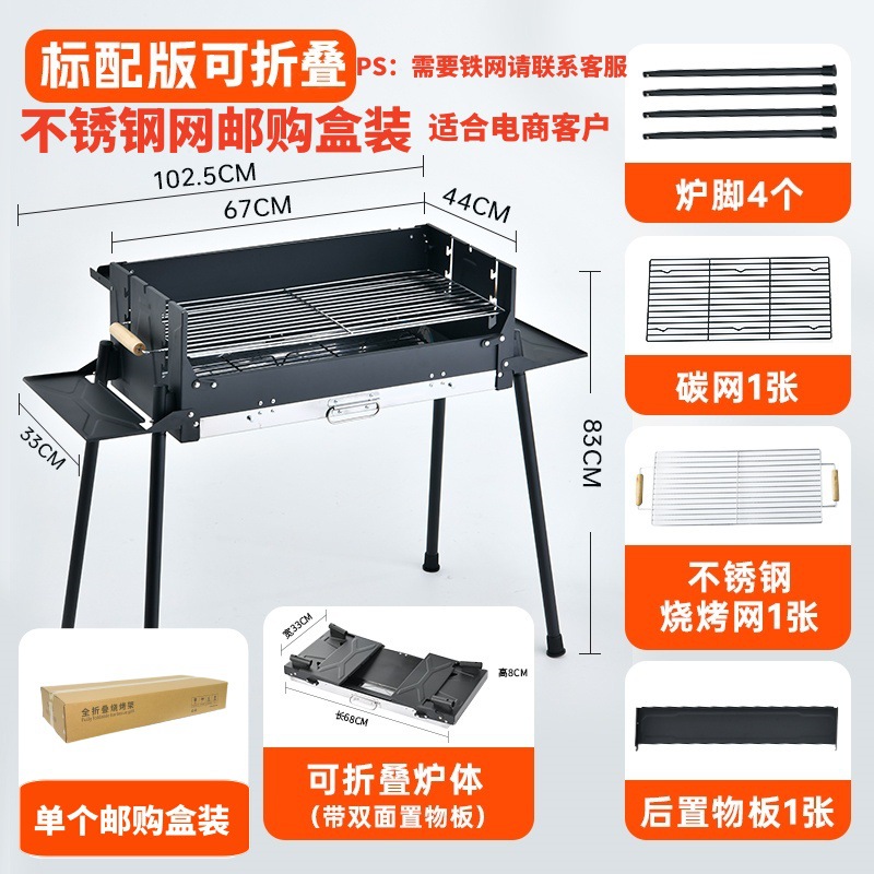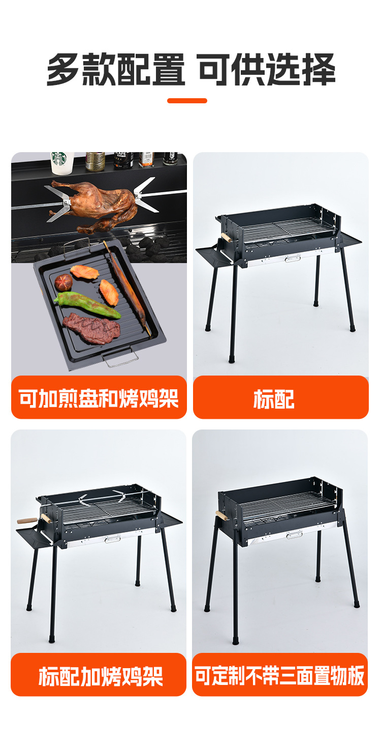 1户外野营旅行BBQ木炭烧烤炉具家用便捷可折叠加厚烧烤架户外烤架