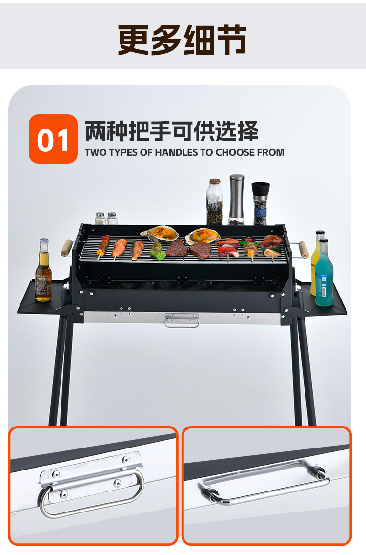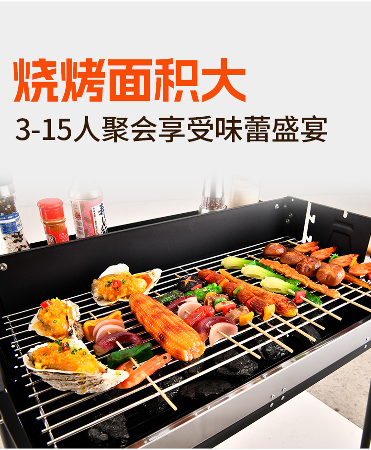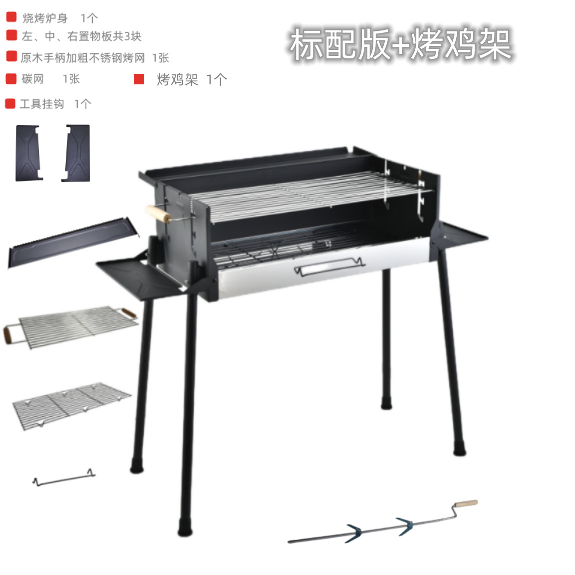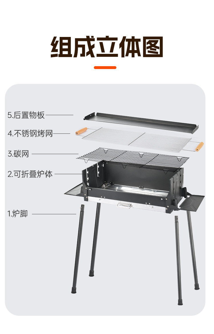 1户外野营旅行BBQ木炭烧烤炉具家用便捷可折叠加厚烧烤架户外烤架
