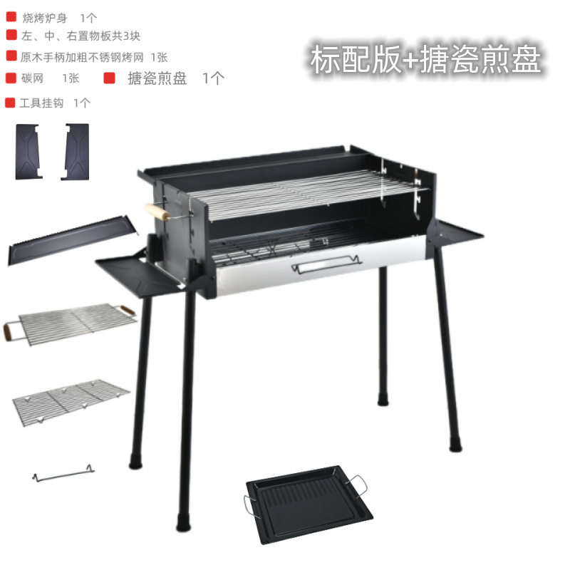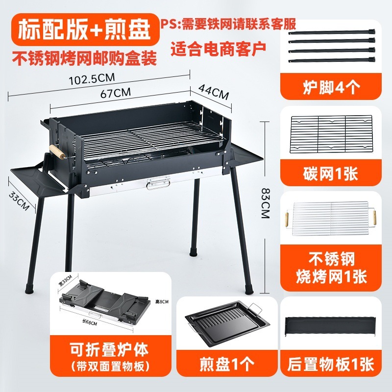 • 접이식 표준 바베큐 그릴 + 에나멜 프라이팬(스테인리스 온라인 통판 상자)