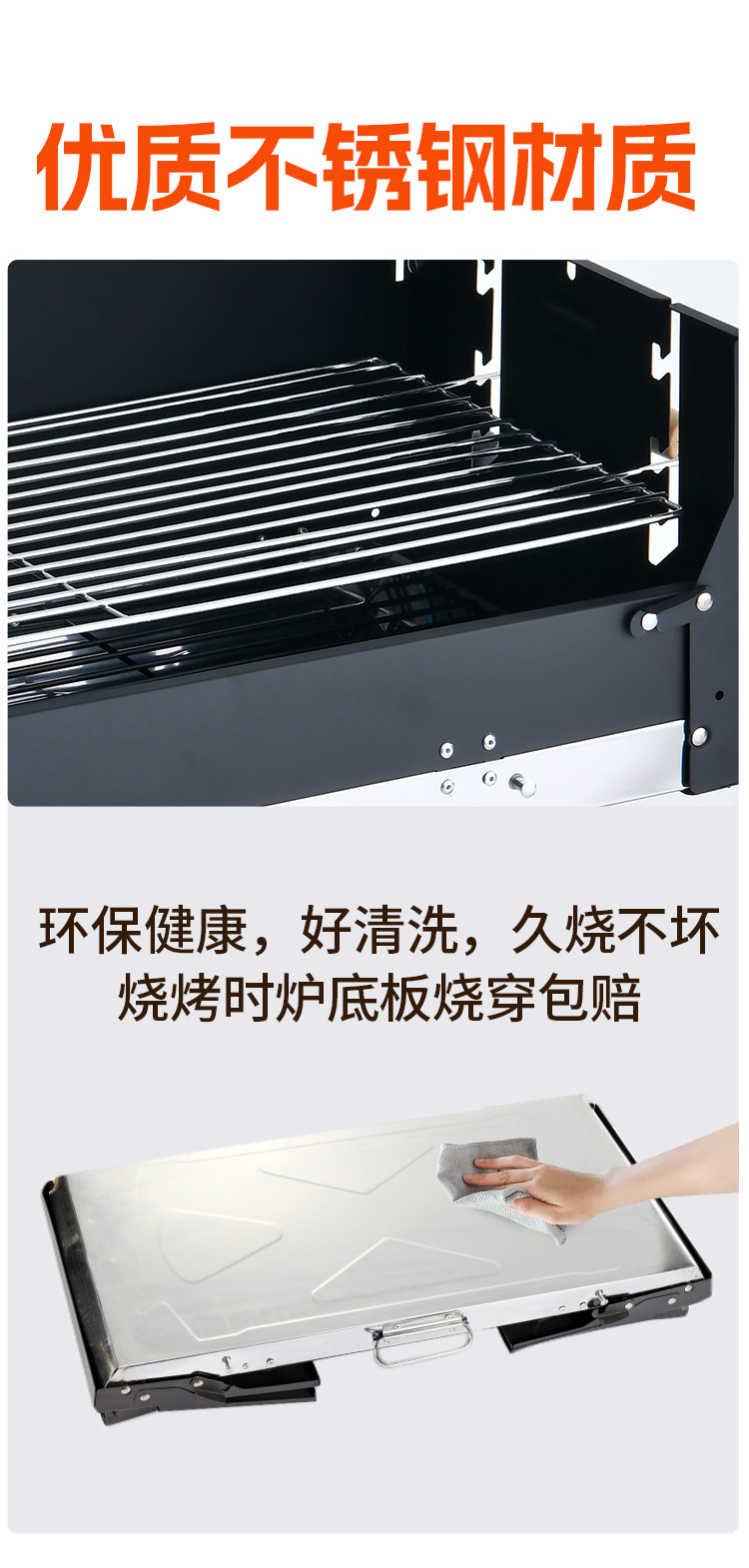 黑色箱式家用户外可折叠烧烤炉 便携多功能露营烧烤炉子 烧烤架
