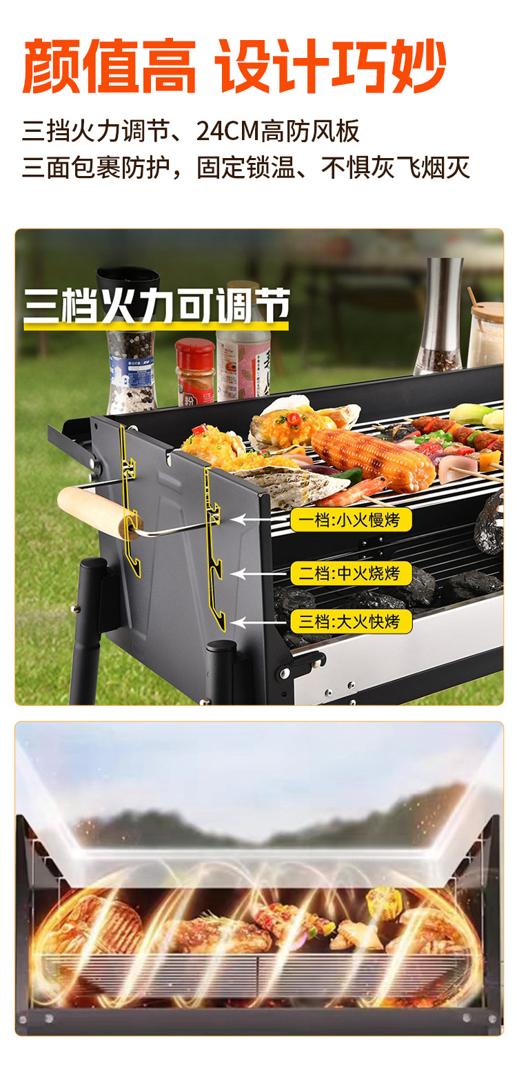 可抽拉炭盘烧烤炉可折叠便携小型烧烤架户外露营烧烤架户外烤架