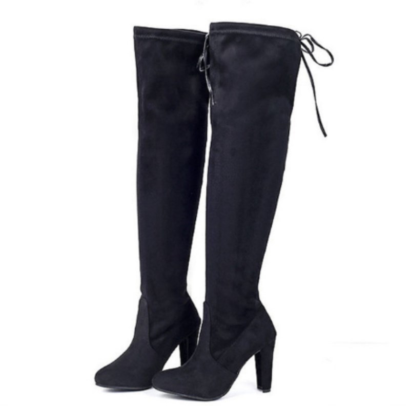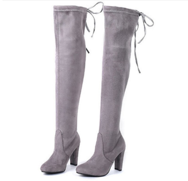34-43 플러스 사이즈 외국 무역 새로운 부츠 여성용 하이힐 뾰족한 무릎 부츠 레이스 업 후 나이트 부츠 장기 공급