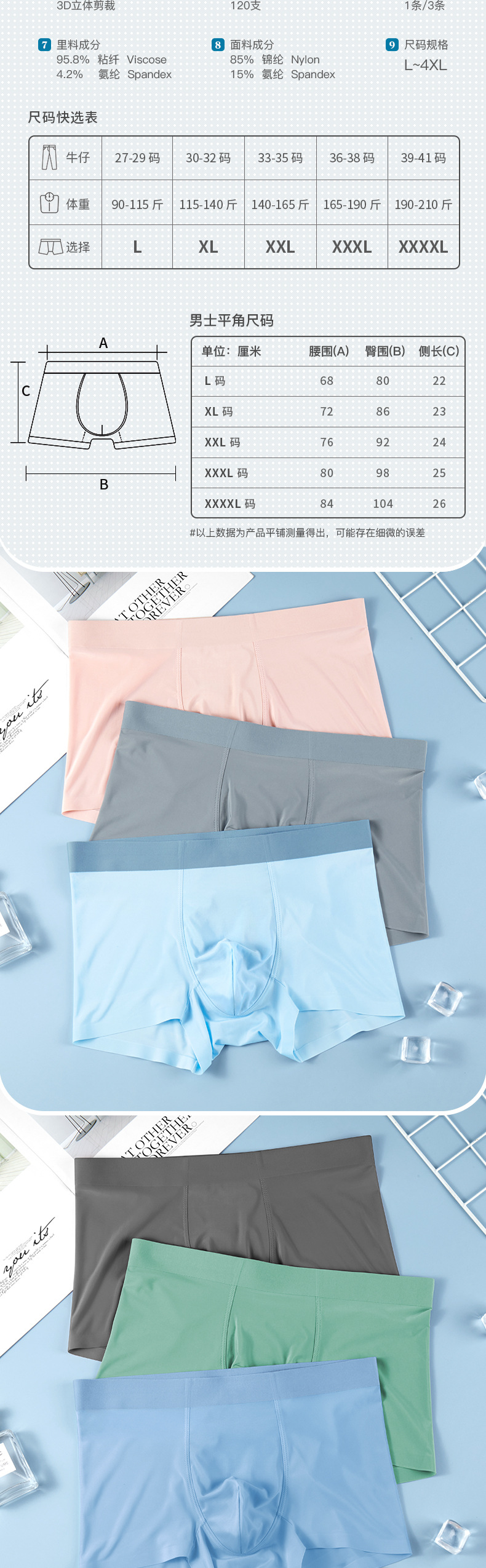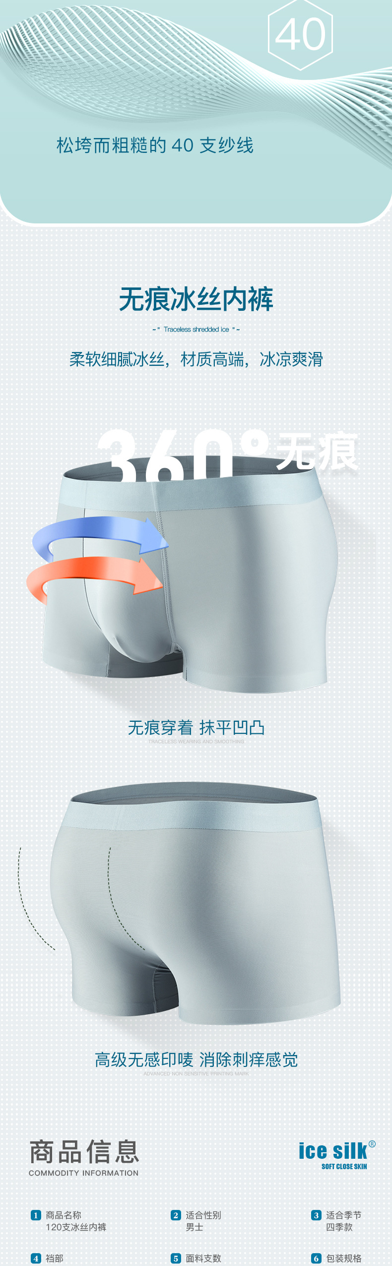 여름 새로운 아이스 실크 속옷 남성용 그래 핀 박테리아 추적없는 남성용 복서 초박형 빠른 건조 솔리드 컬러 박스스토어 가기