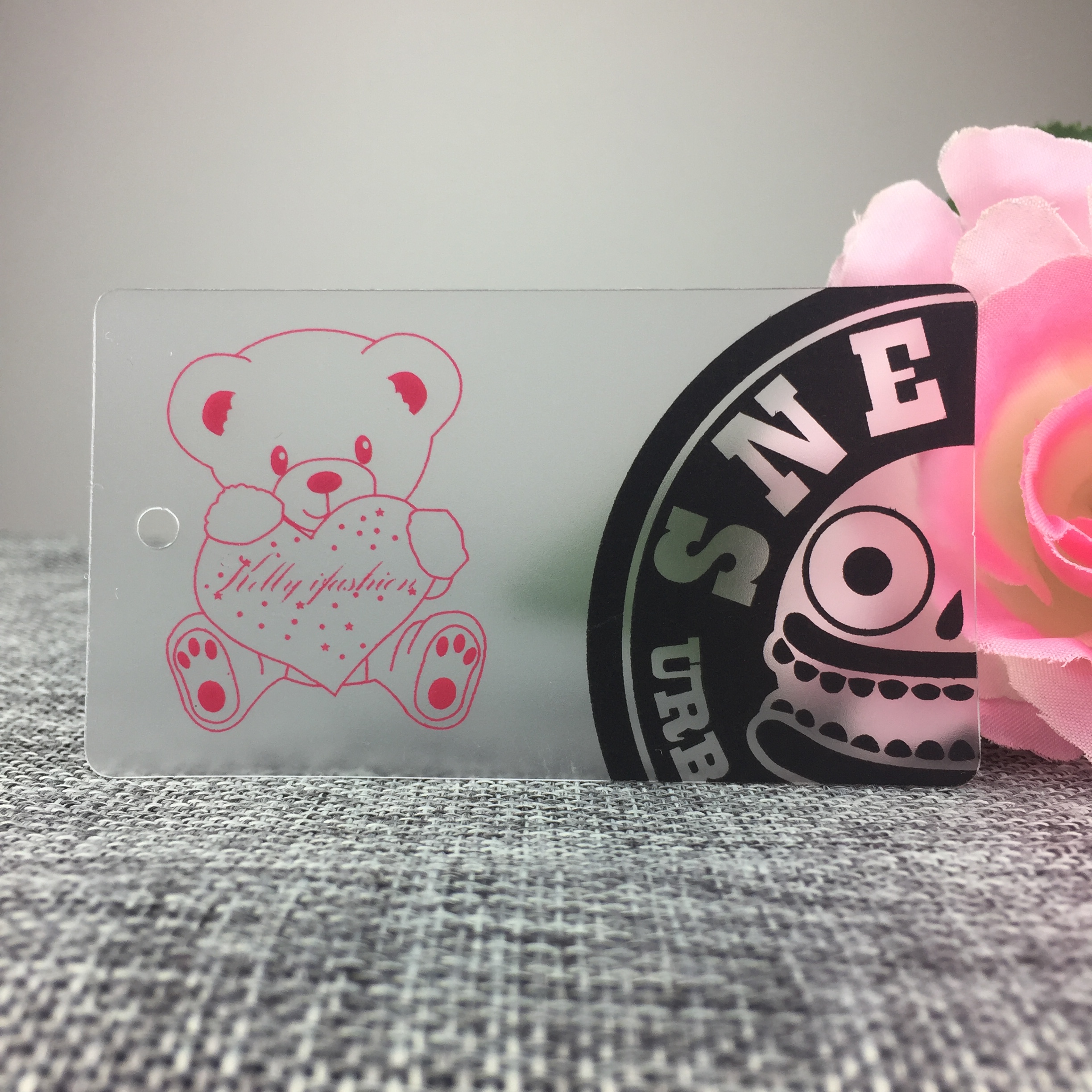 도매 브랜드 새로운 빈 소재 카드 색상 투명 젖빛 PVC 태그 사용자 정의 방수 플라스틱 태그 서명스토어 가기