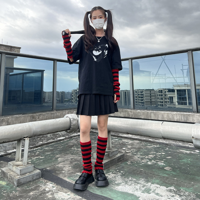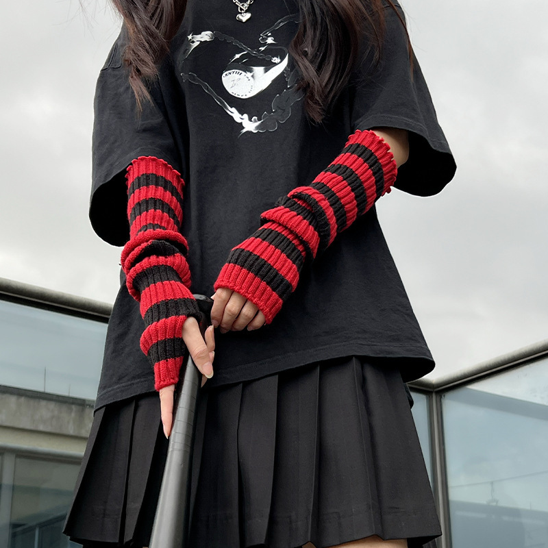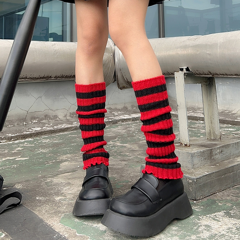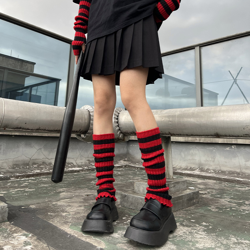 Jk 스파이스 걸스 양말 여성용 일본 니트 두꺼운 선 검정과 빨강 줄무늬 장갑 가을과 겨울 따뜻한 로리타 쌓인 양말 유행스토어 가기