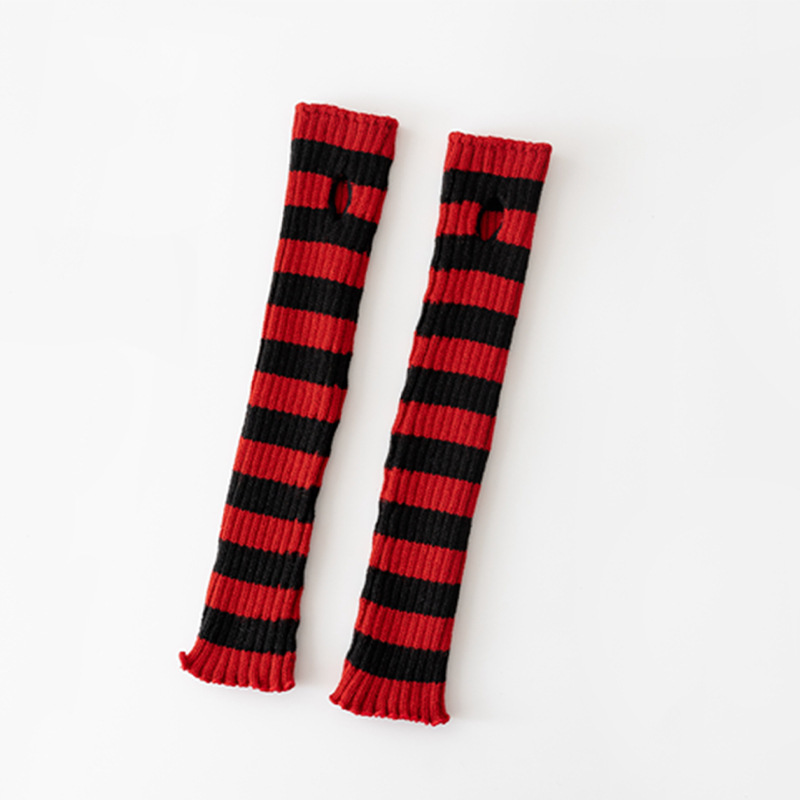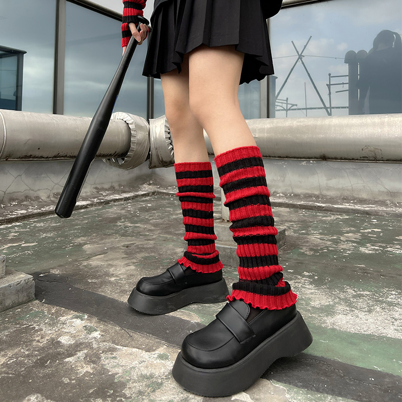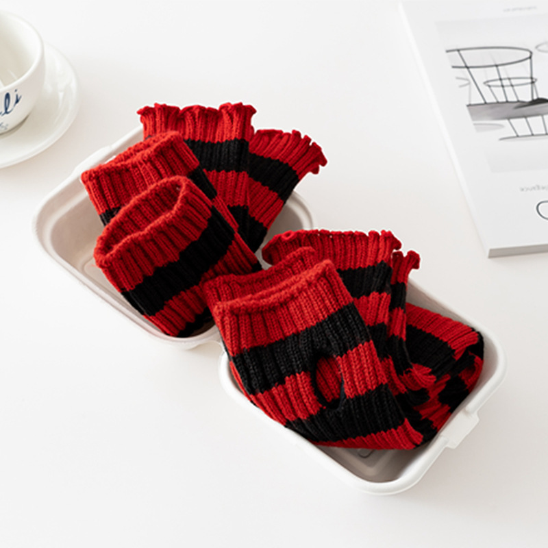 Jk 스파이스 걸스 양말 여성용 일본 니트 두꺼운 선 검정과 빨강 줄무늬 장갑 가을과 겨울 따뜻한 로리타 쌓인 양말 유행