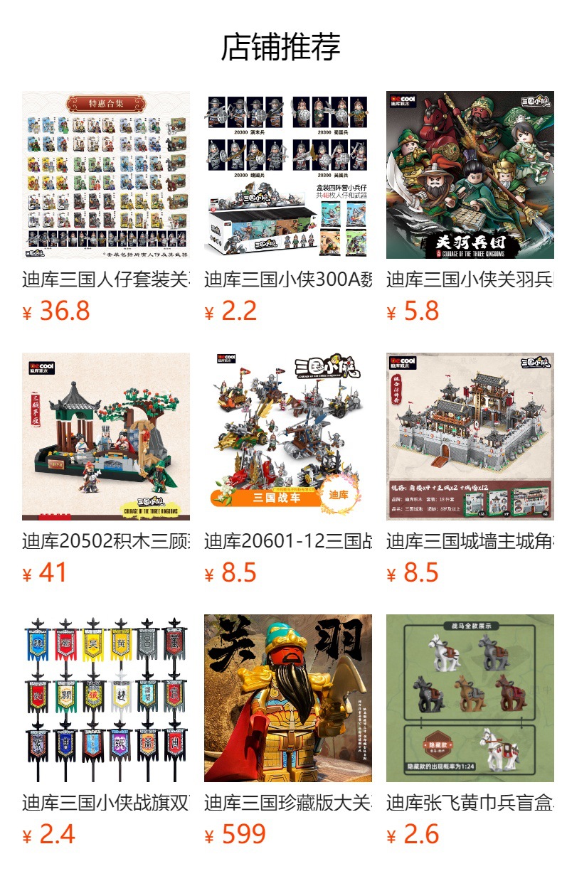 Diku 20301 건물, 삼국지 남자와 다섯 호랑이 블록 Zhuge Liang Guan Yu Zhao Yang Zhang Fei 손 장난감 제 3 자스토어 가기
