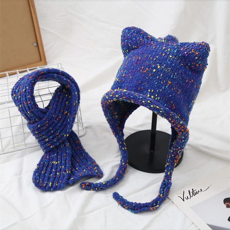 달콤한 귀여운 새끼 고양이 귀 양모 모자 레이스 업 컬러 니트 모자 여성의 일본 가을과 겨울 귀 따뜻한 모자스토어 가기