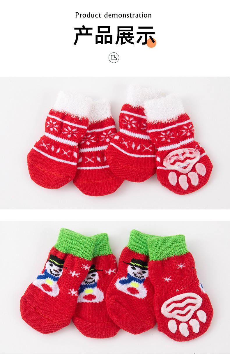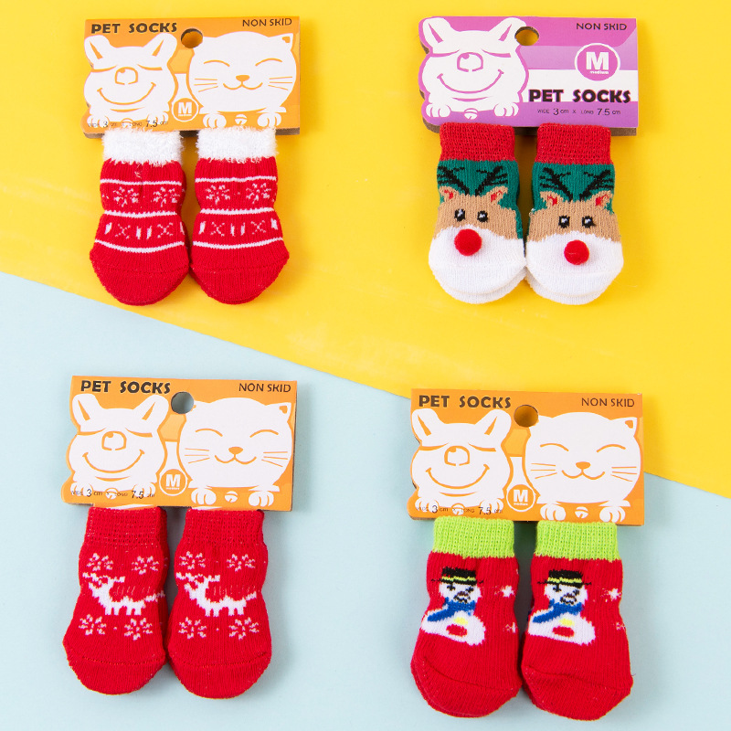 애완 동물 양말 미끄럼 방지 바닥이 다리 보호대에서 떨어지지 않습니다 개 신발 양말 개 발 커버 테디 코기 고양이 면화 양말 4스토어 가기