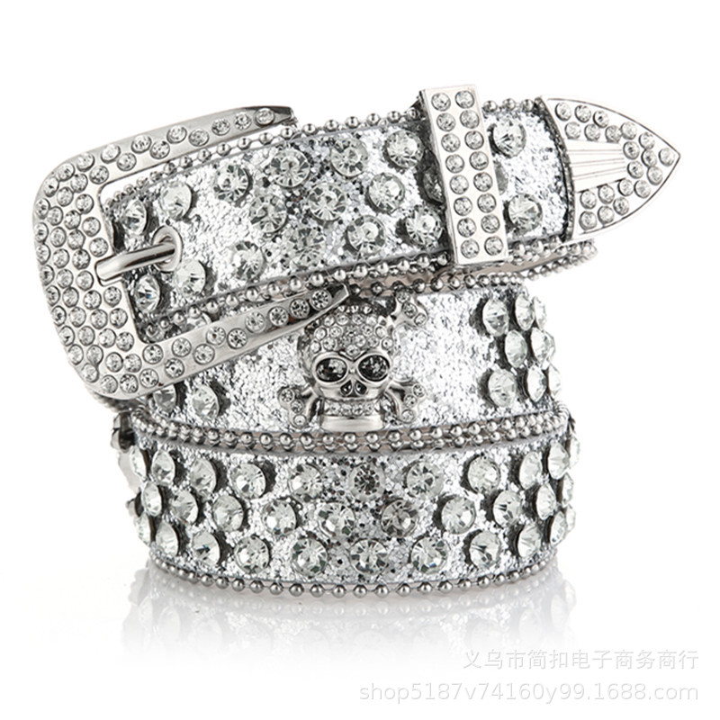 여자의 해골 라인 석 벨트 유럽과 미국 스타일 여자의 벨트 긴 벨트 데님 스타일 야외 벨트
