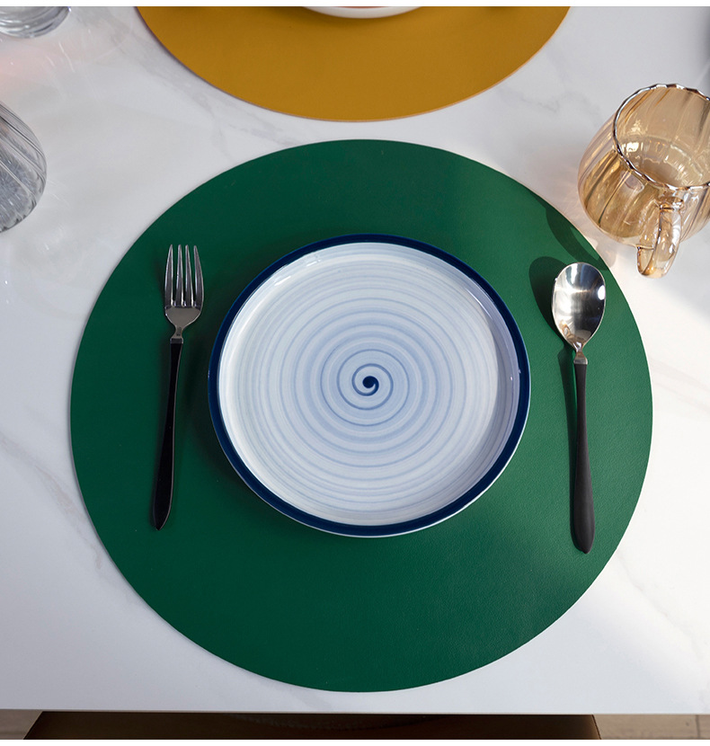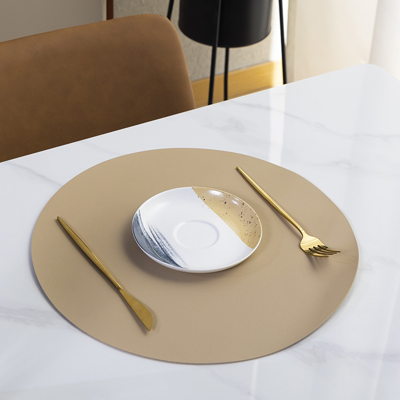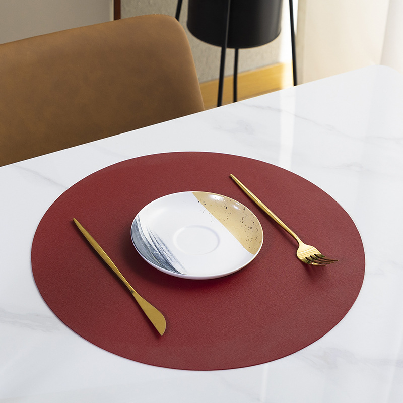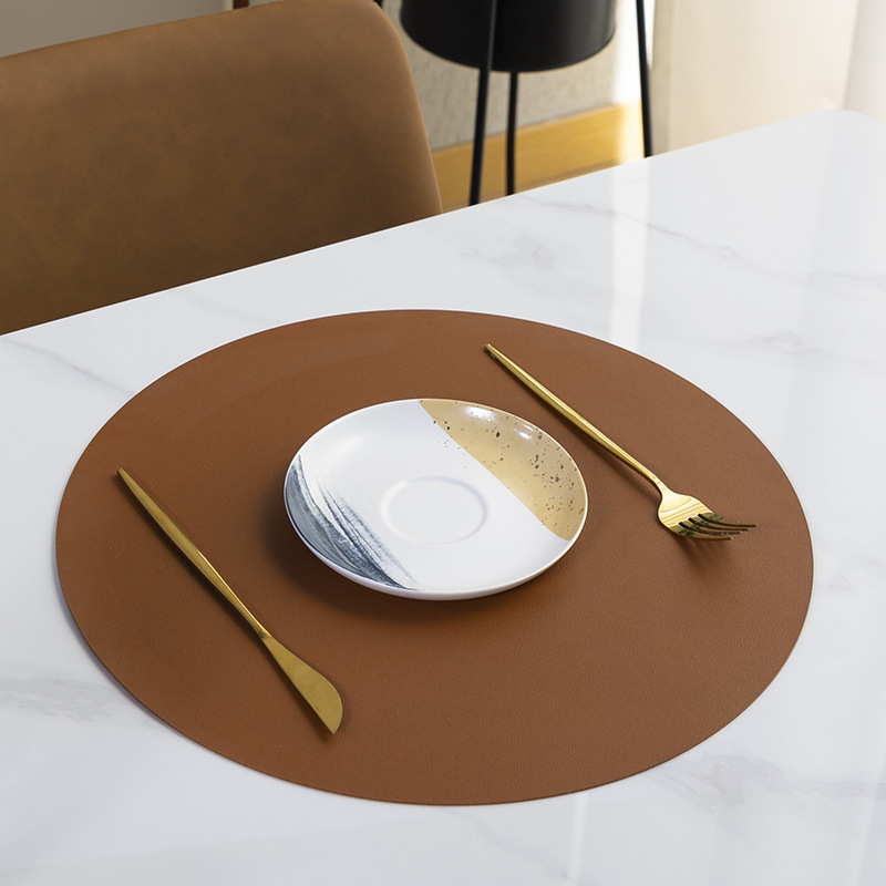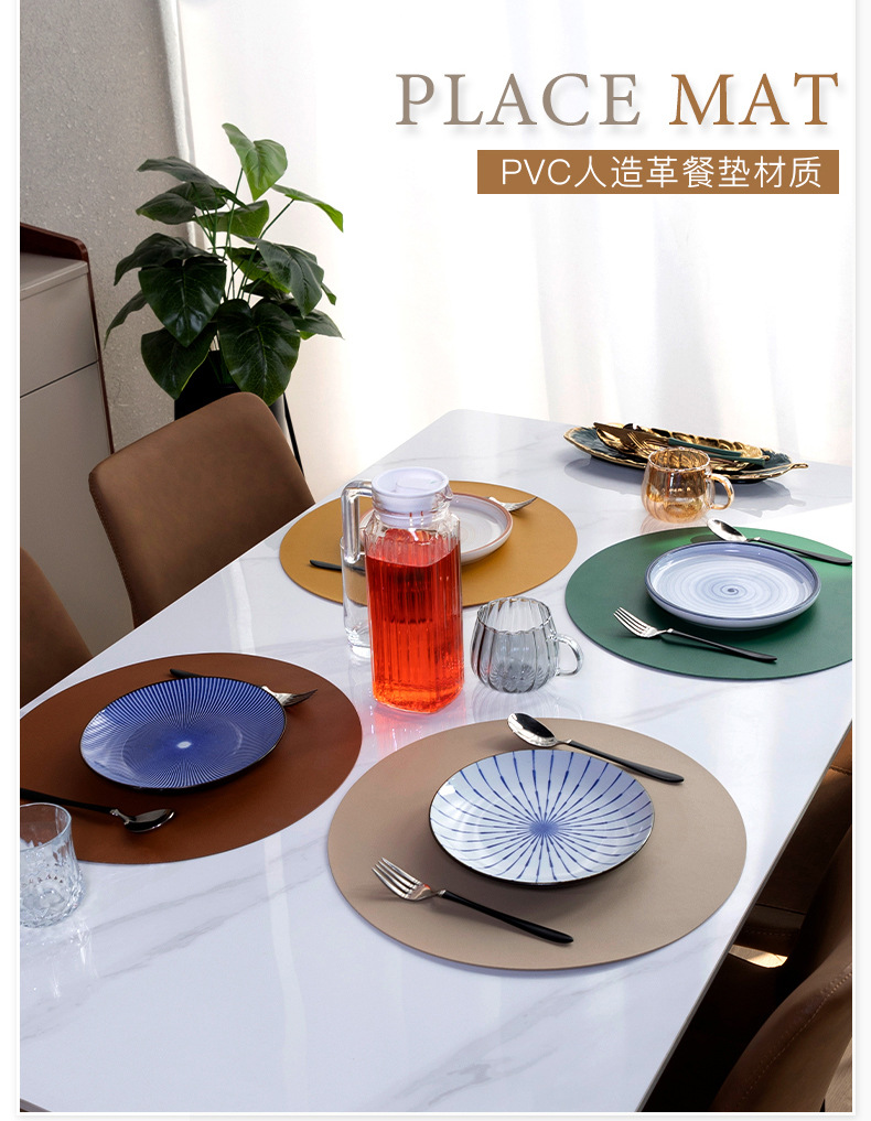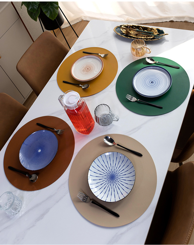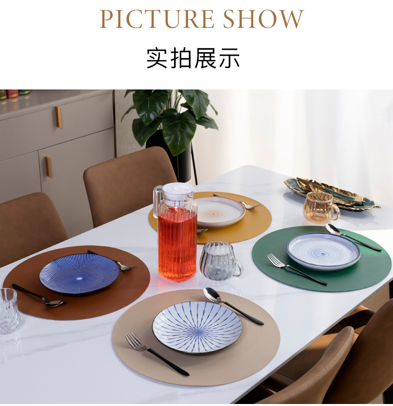 사용자 정의 라운드 PU 가죽 플레이스매트 테이블 매트 공장 직접 캠프 일정 온도 단열 매트 생활 그릇 매트 캠핑 피크닉 매트