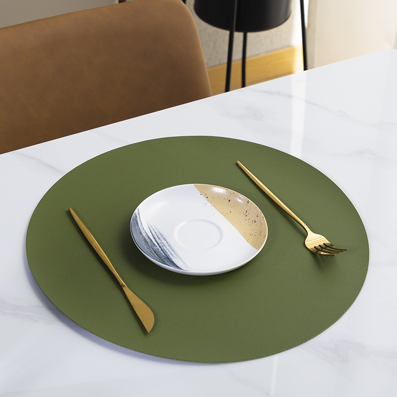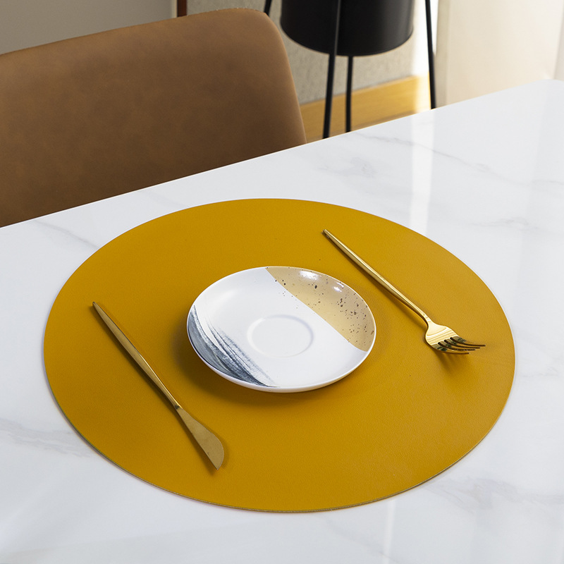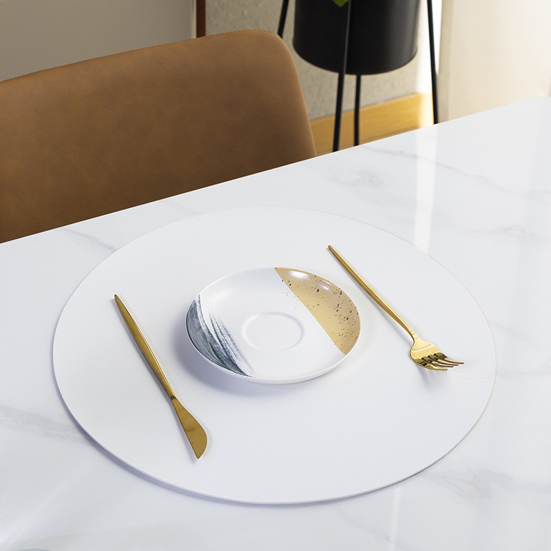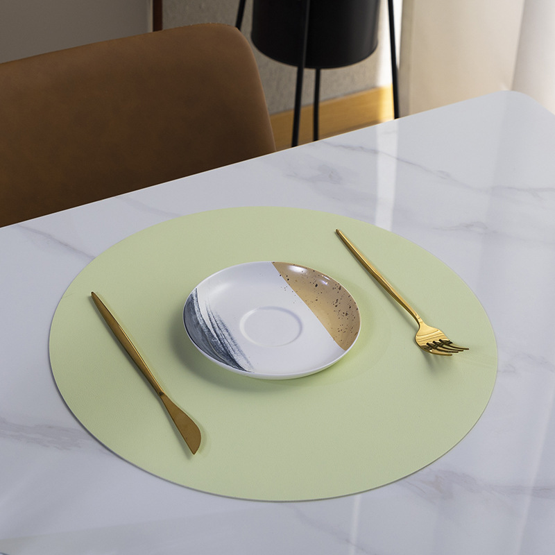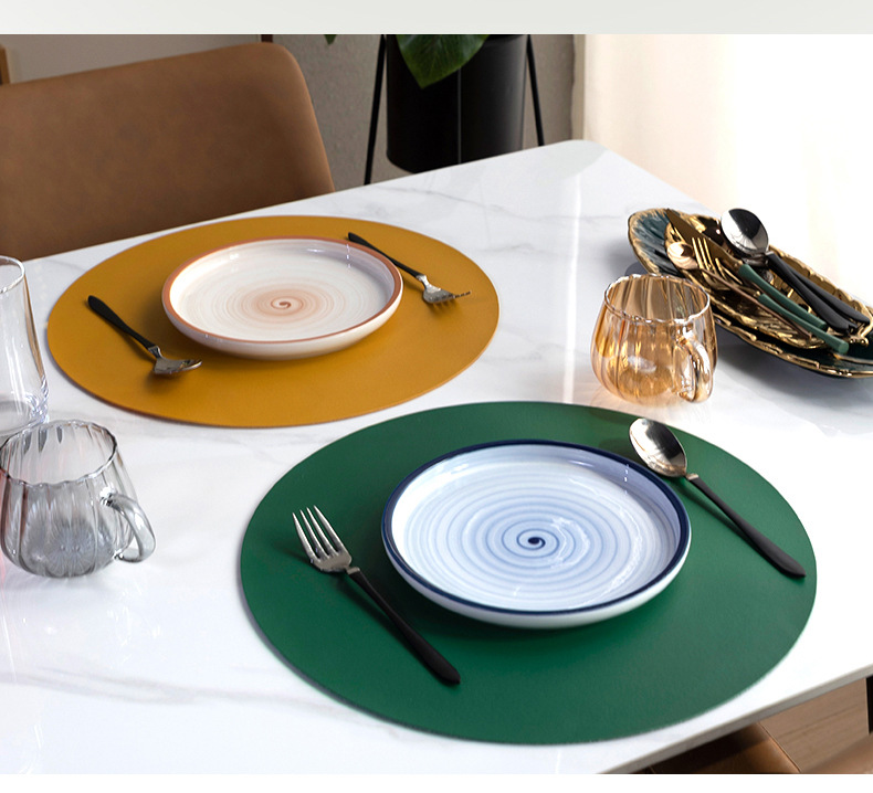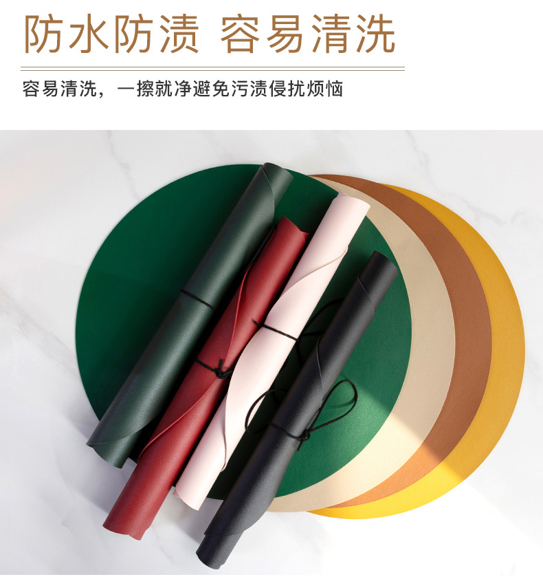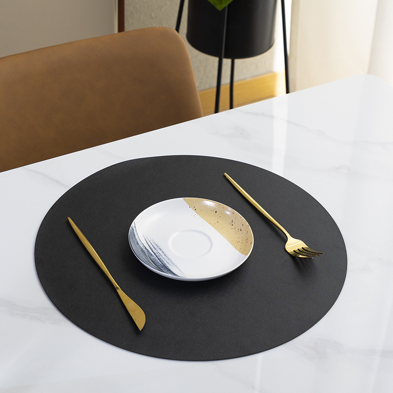 사용자 정의 라운드 PU 가죽 플레이스매트 테이블 매트 공장 직접 캠프 일정 온도 단열 매트 생활 그릇 매트 캠핑 피크닉 매트