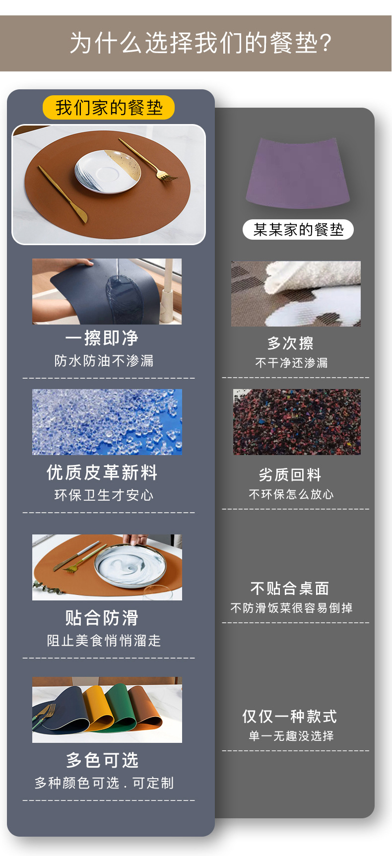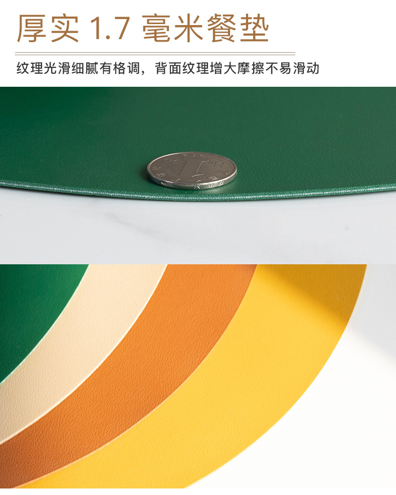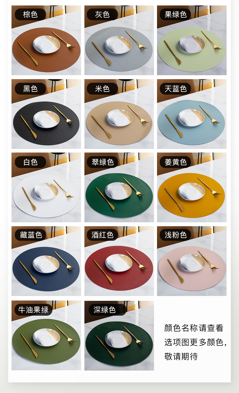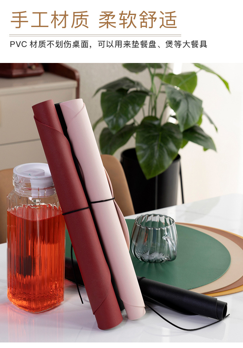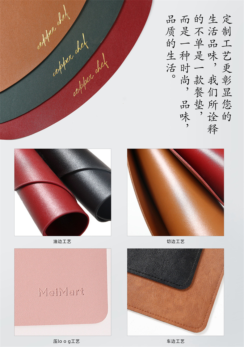 사용자 정의 라운드 PU 가죽 플레이스매트 테이블 매트 공장 직접 캠프 일정 온도 단열 매트 생활 그릇 매트 캠핑 피크닉 매트