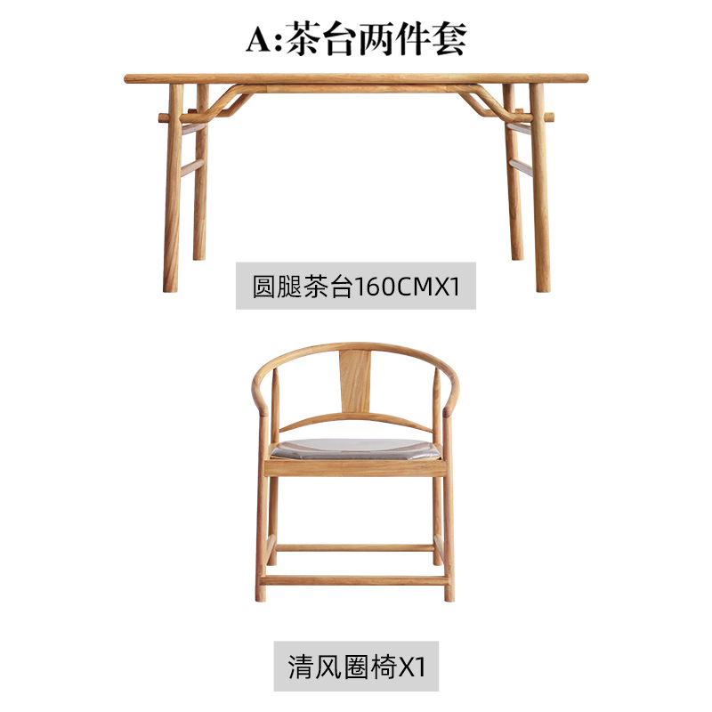 • 둥근 다리 티 테이블/느릅 나무 160*70*75cm