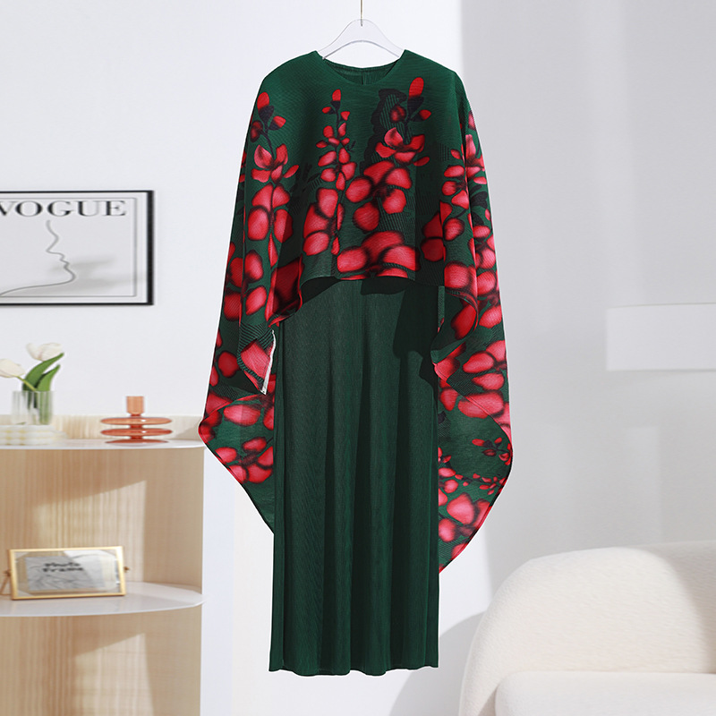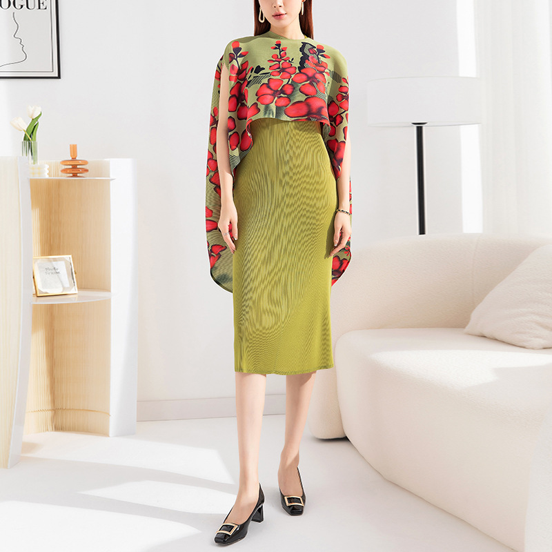 플리츠 패션 우아한 세트 여성의 봄과 가을 새로운 슬림 핏 원피스 + 프린트 숄 재킷 투피스 세트스토어 가기