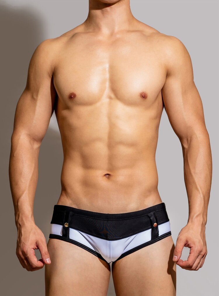 D.M 남자 수영 트렁크 섹시한 낮은 허리 바느질 테더 흑백 브리프 나일론 꽉 수영장 파티 큰 파티 그물 레드스토어 가기