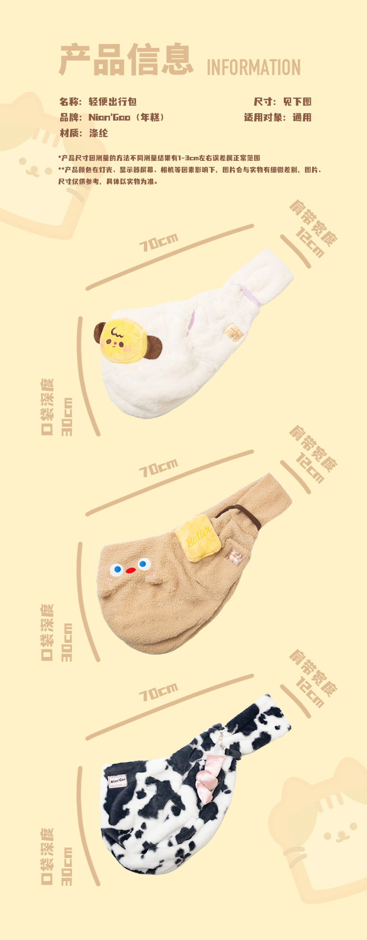 [NianGao NianGao] 패션 귀여운 메신저 가방 고양이 가방 개 가방 휴대용 작은 개 나가는 편안한 배낭스토어 가기