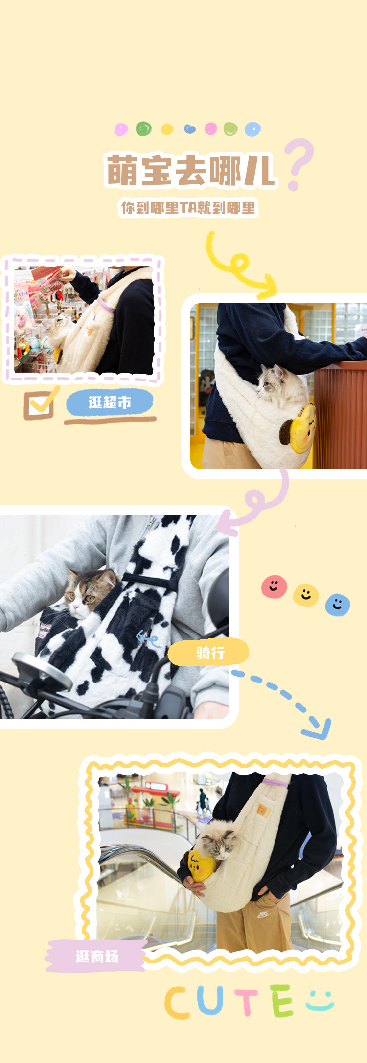 [NianGao NianGao] 패션 귀여운 메신저 가방 고양이 가방 개 가방 휴대용 작은 개 나가는 편안한 배낭