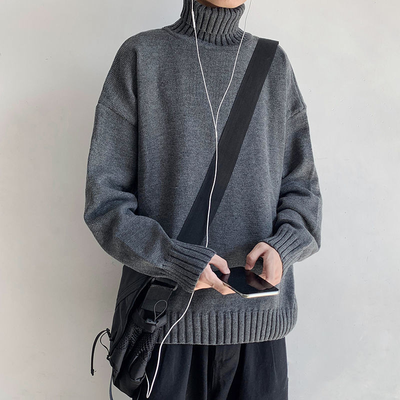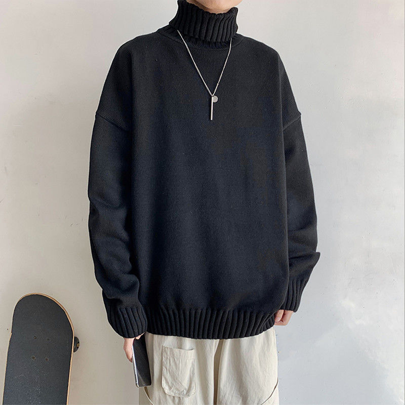 일본 복고풍 터틀넥 스웨터 남자의 루즈한베이스 니트 스웨터 가을과 겨울 두꺼운 2021 새로운 패션 헤어스토어 가기