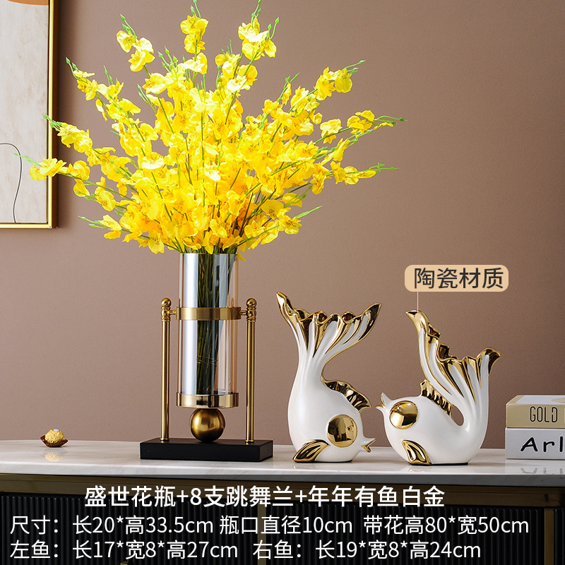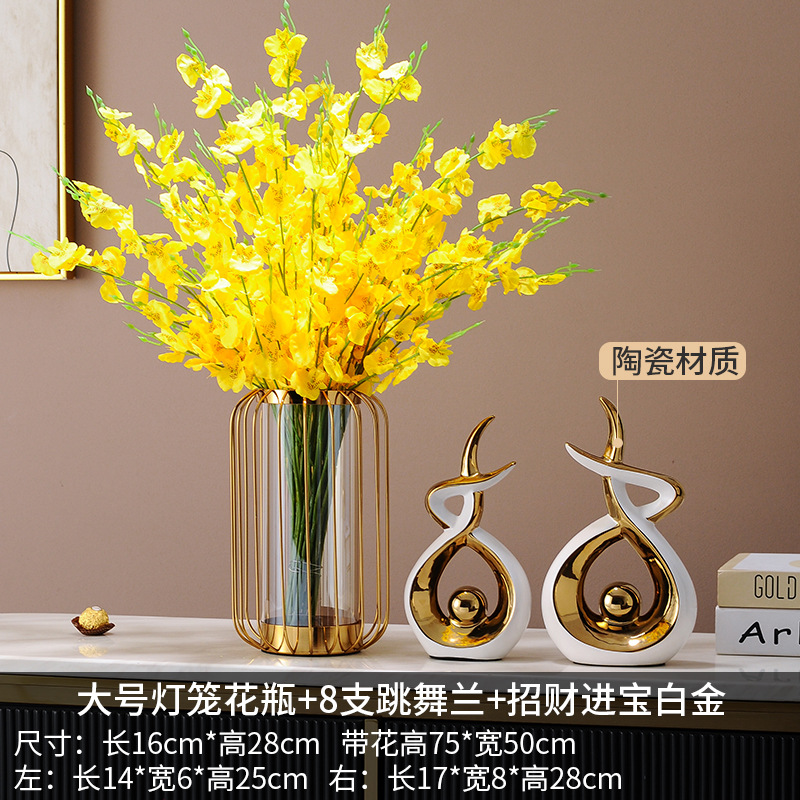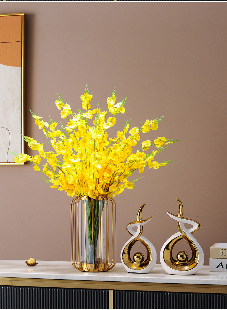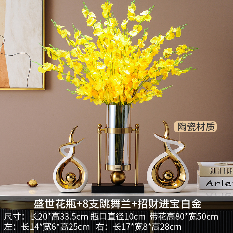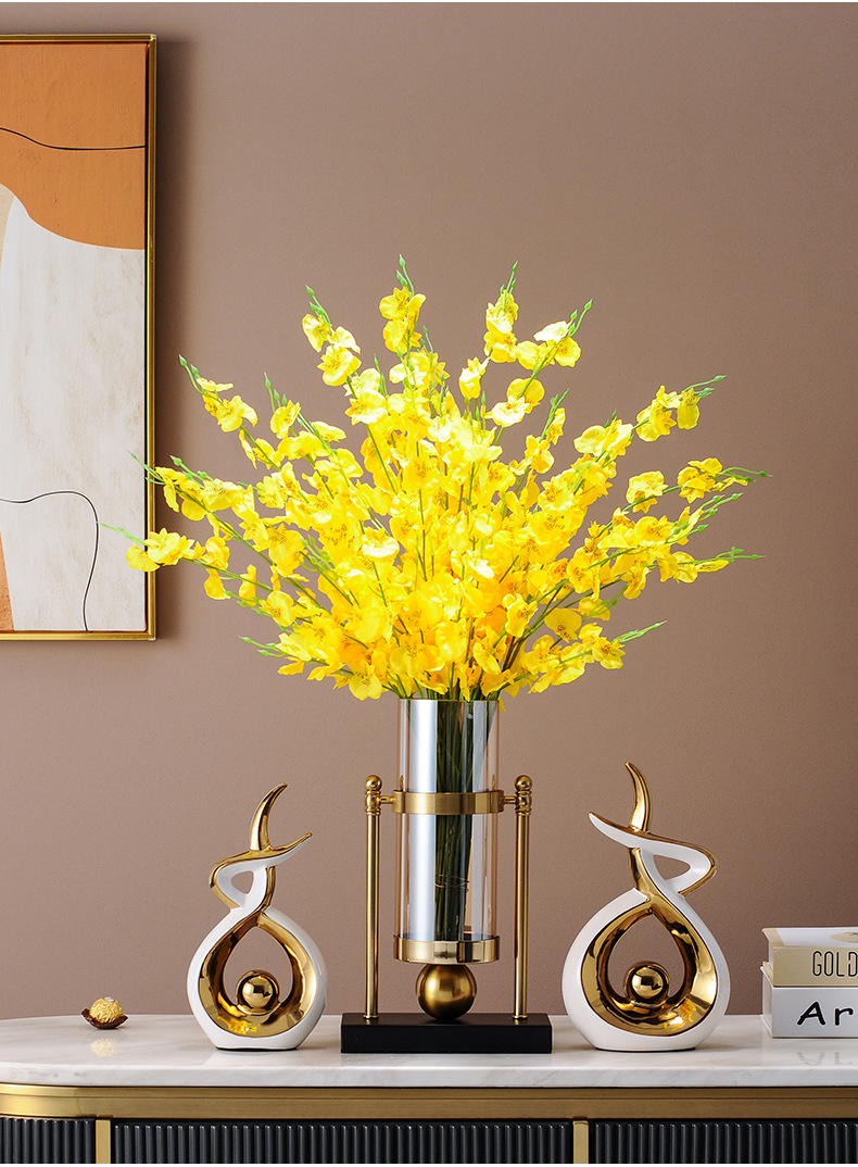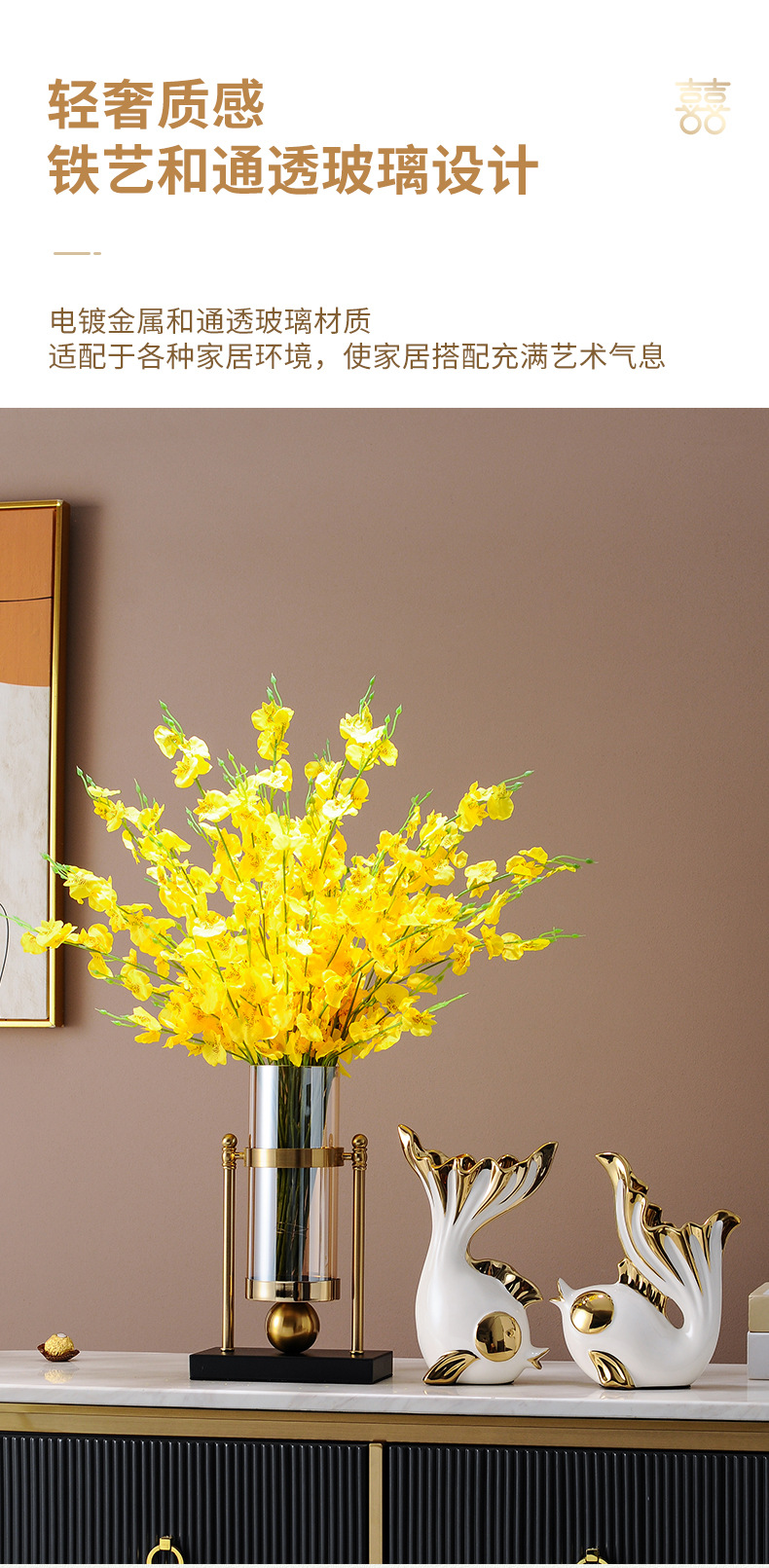 가벼운 고급 유리 꽃병 장식품 창조적 인 거실 말린 꽃 배열 꽃 예술 현대 입구 TV 캐비닛 식탁 장식
