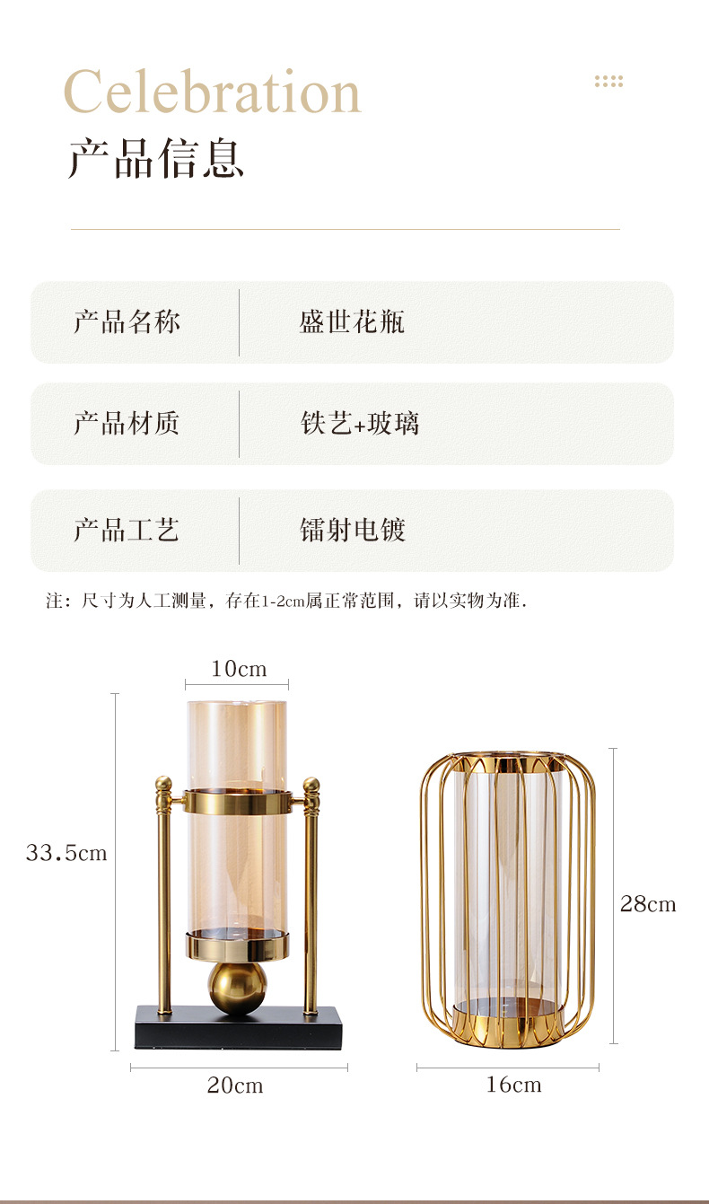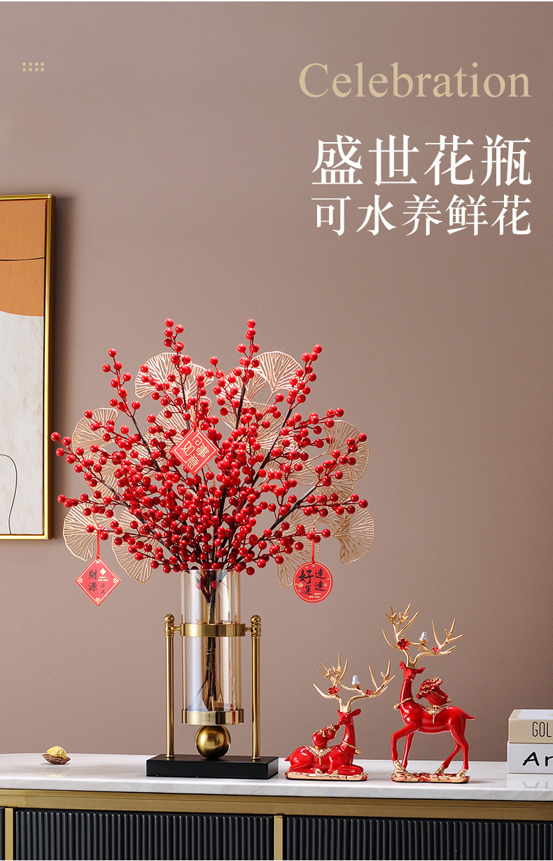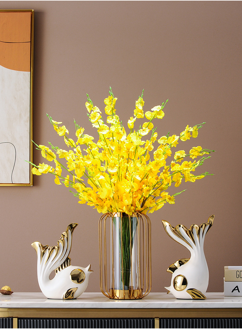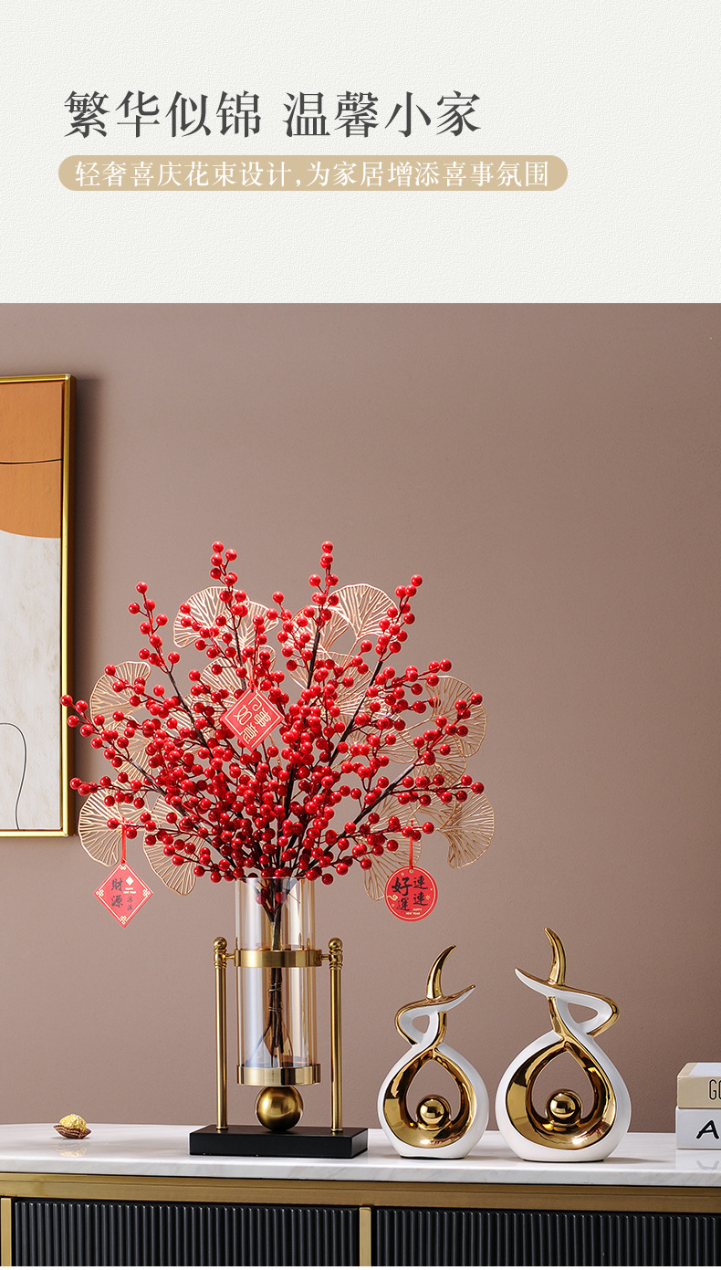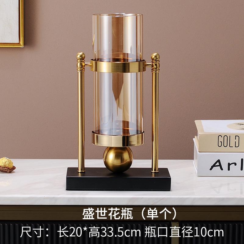 가벼운 고급 유리 꽃병 장식품 창조적 인 거실 말린 꽃 배열 꽃 예술 현대 입구 TV 캐비닛 식탁 장식