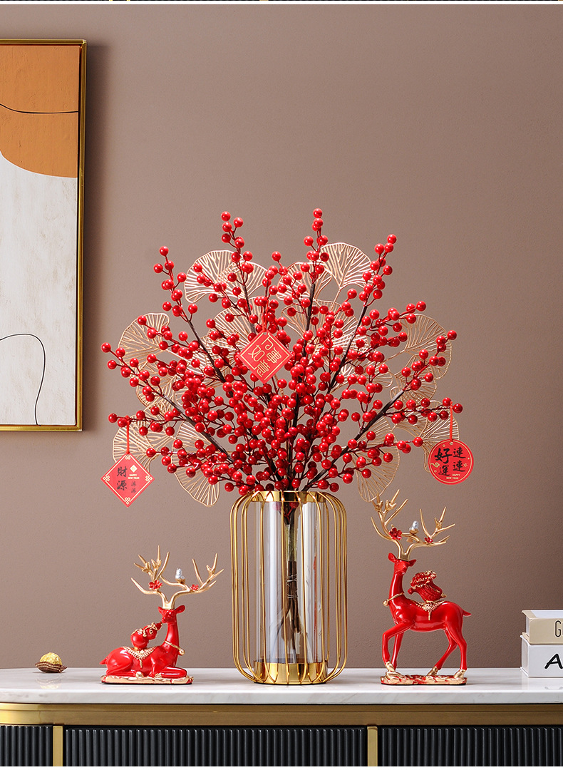 • 랜턴 빨간 과일 붉은 사슴 조합