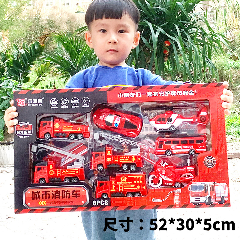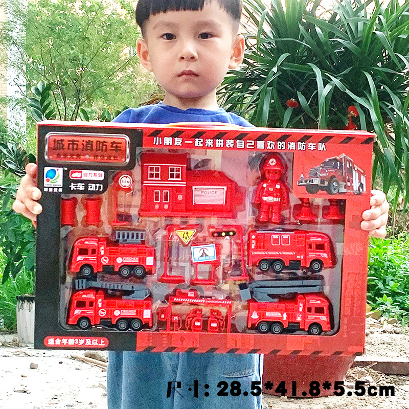 엔지니어링 트럭 소방차 모델 관성 트럭 세트 불도저 굴착기 소년 장난감 청 선물 도매