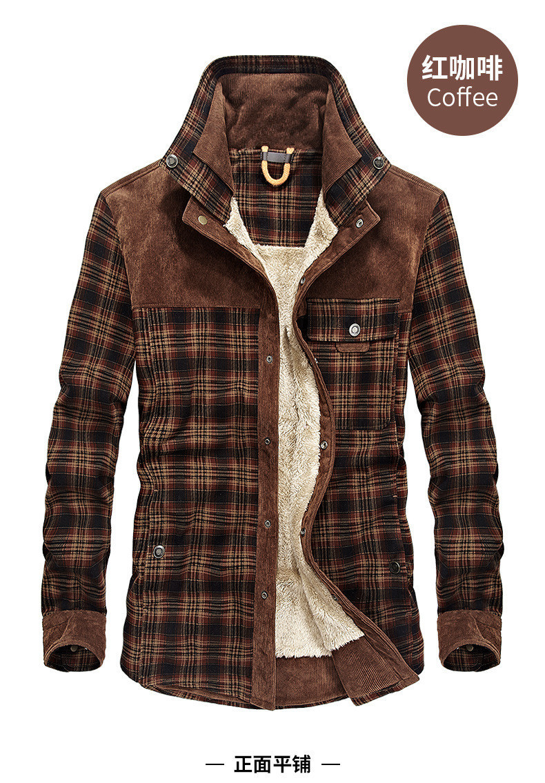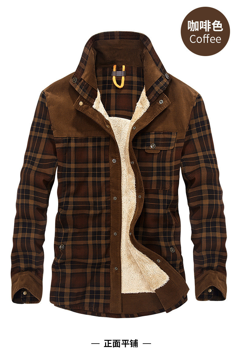 2023 새로운 기모 두껍게 만든 남성용 격자 무늬 옷깃 분할 컬러 셔츠스토어 가기