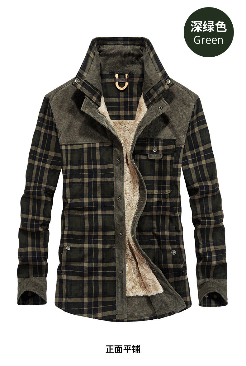 2023 새로운 기모 두껍게 만든 남성용 격자 무늬 옷깃 분할 컬러 셔츠