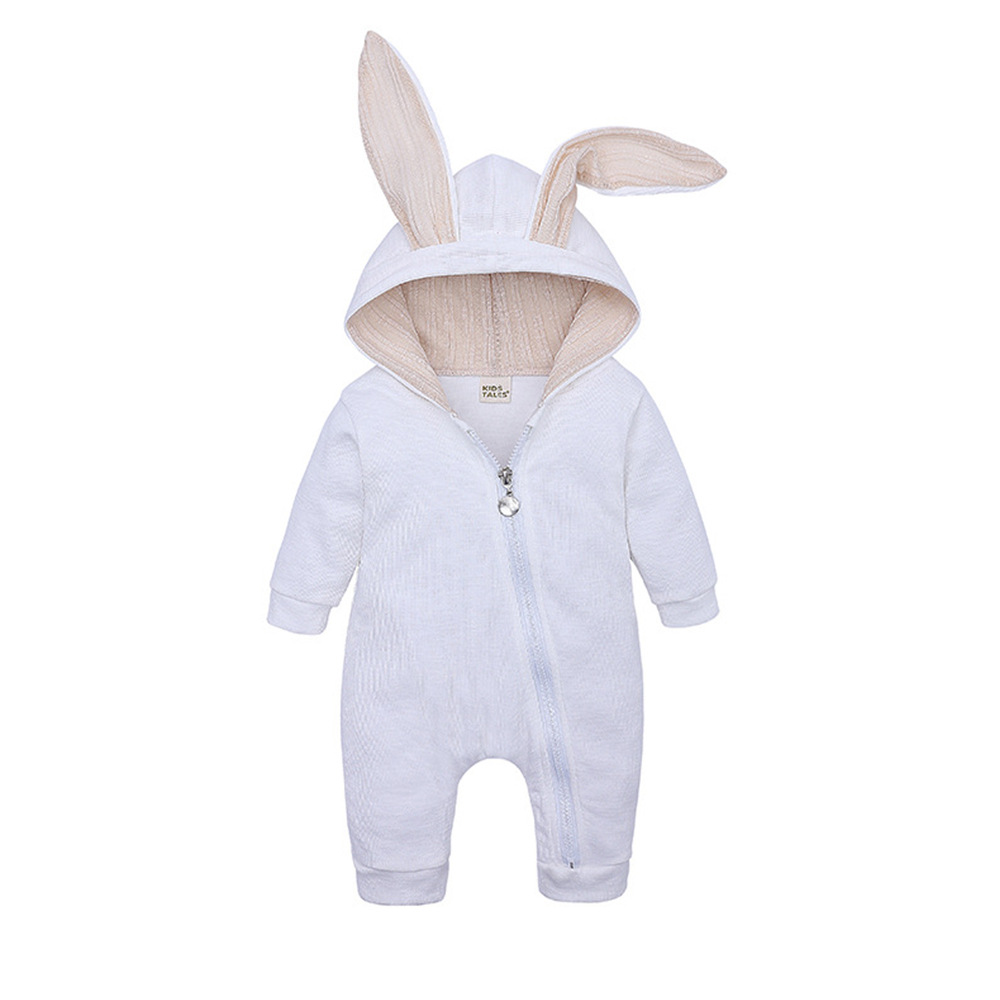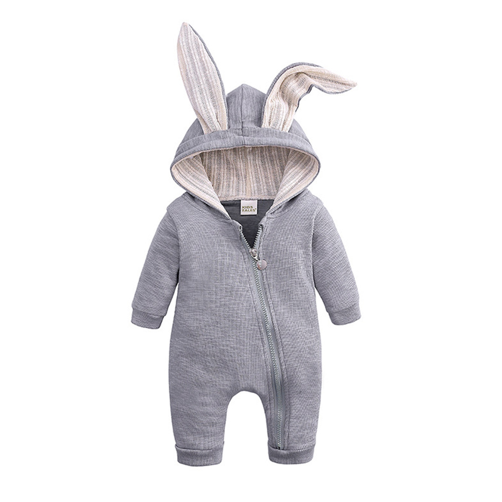 새로운 면 점프 슈트 아기 가을과 겨울 토끼 귀 어린이 후드 지퍼 등반 세트 토끼 아마존 크로스 보더스토어 가기