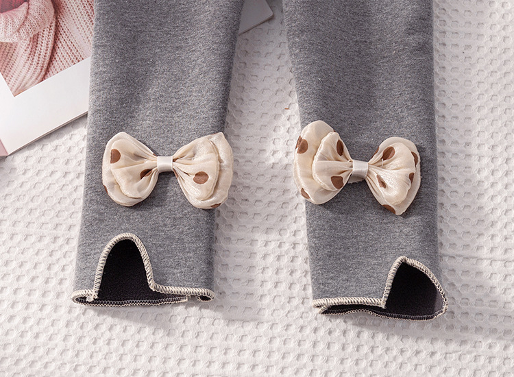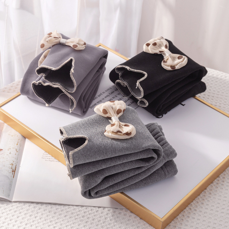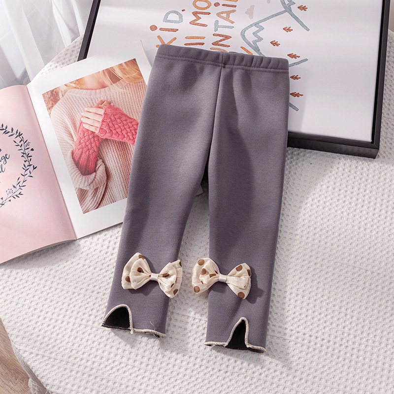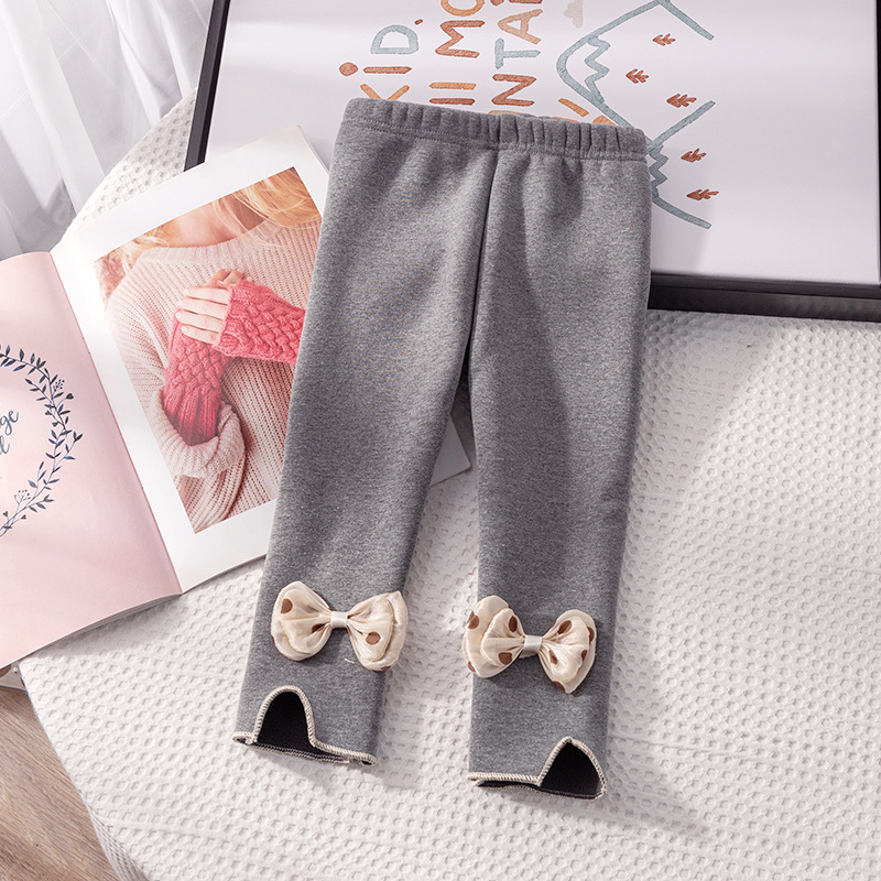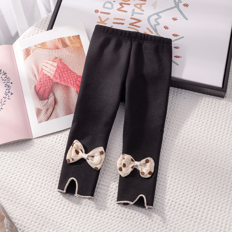여아 기모 레깅스 새로운 겨울 소녀 세련된 슬림 핏 보우 바지 아기 소녀 따뜻한 바지스토어 가기