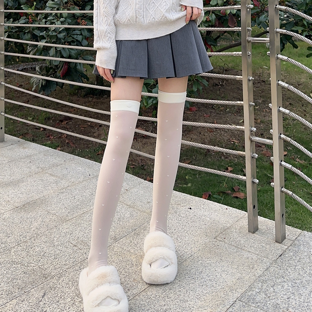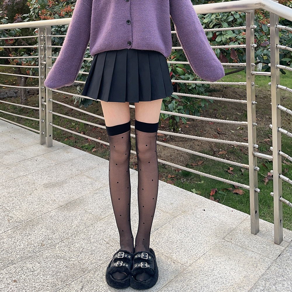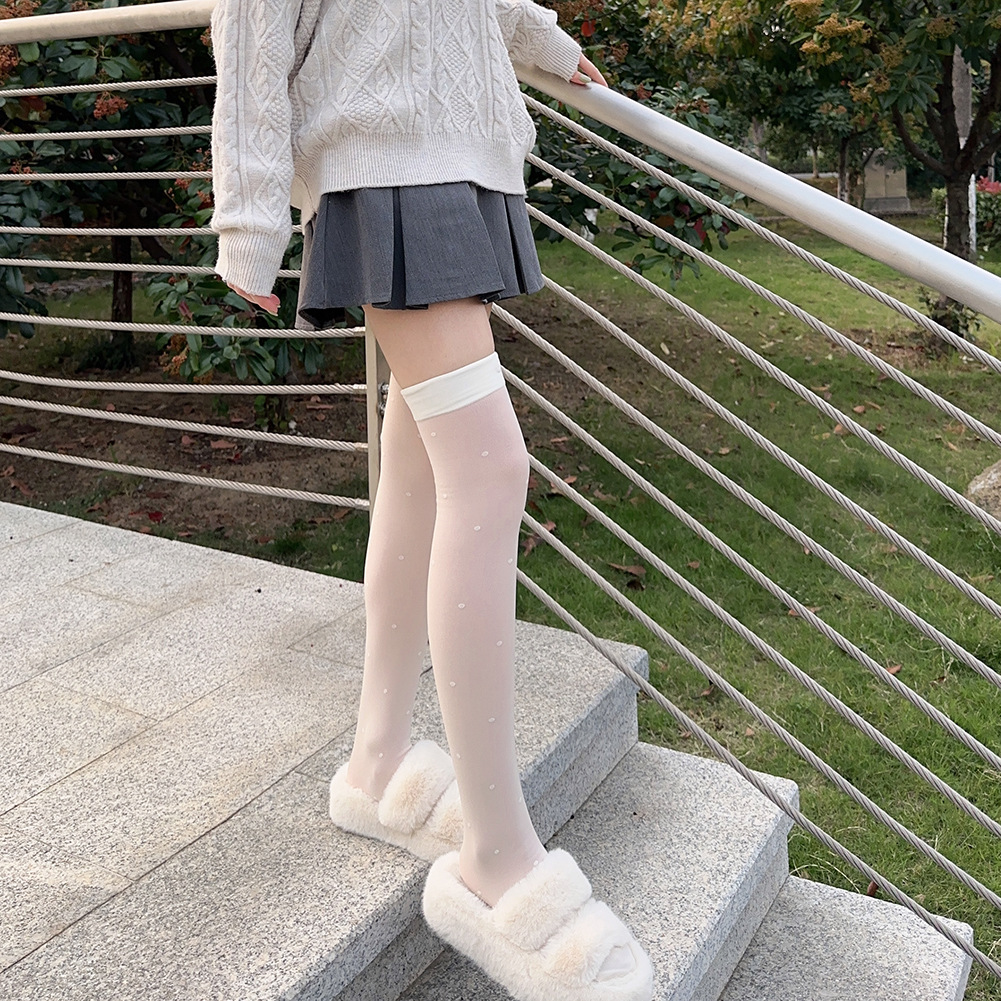 가을과 겨울 순수한 섹시한 더블 버튼 이동식 검은 스타킹 사랑 작은 물방울 무늬 거짓 육체 무릎 높은 양말스토어 가기