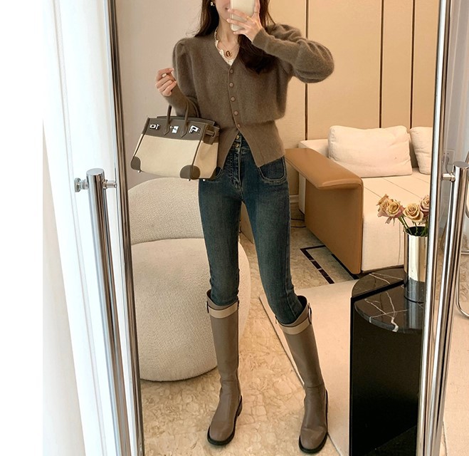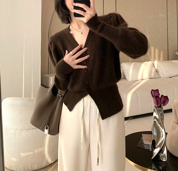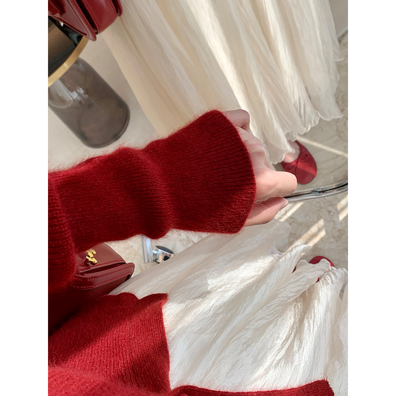 레드 니트 가디건 여성용 쇼트 2022 가을 겨울 새로운 V넥 긴팔 올매치 우아한 슬림핏 베이스 셔츠스토어 가기