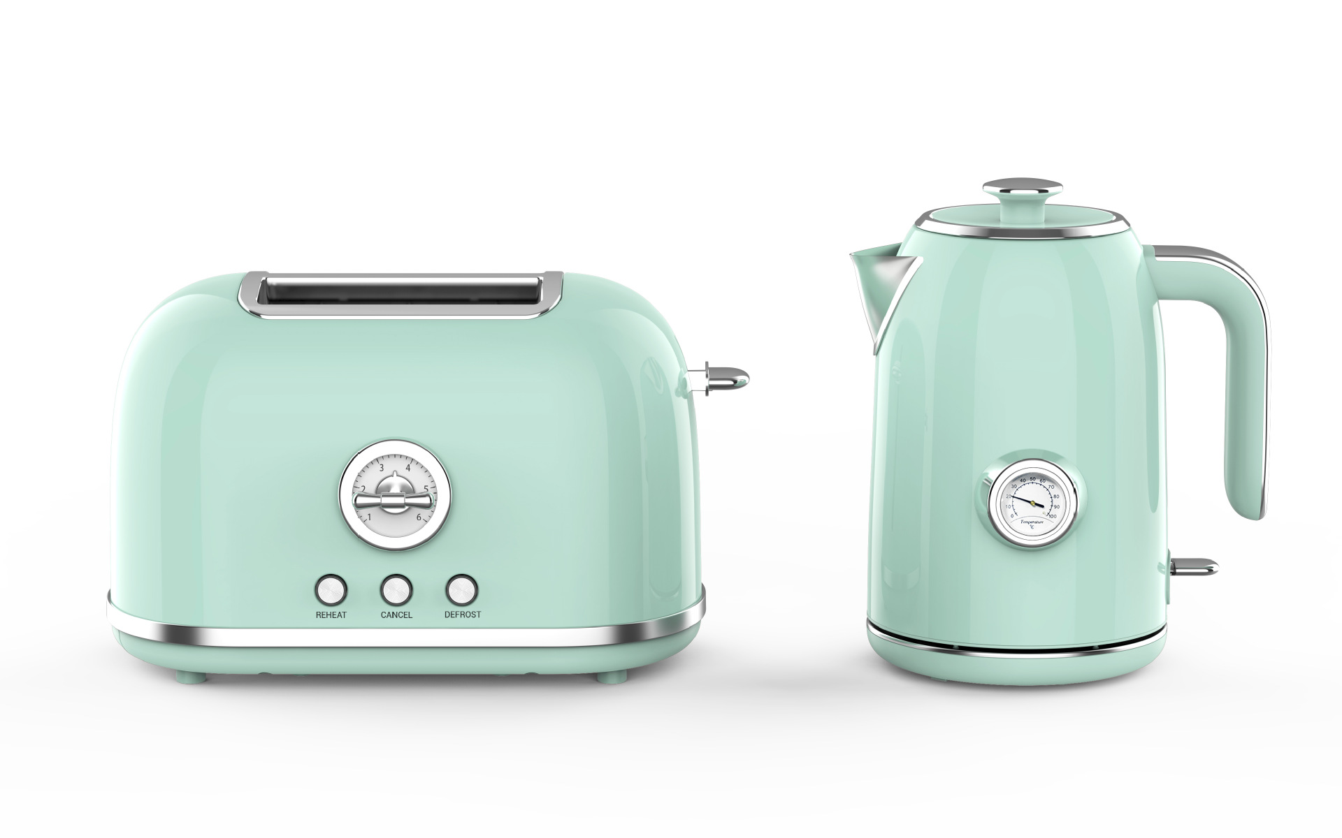 [핫 세트] 가정용 복고풍 자동 토스터 1.7L 온도계 스테인레스 스틸 전기 주전자 세트