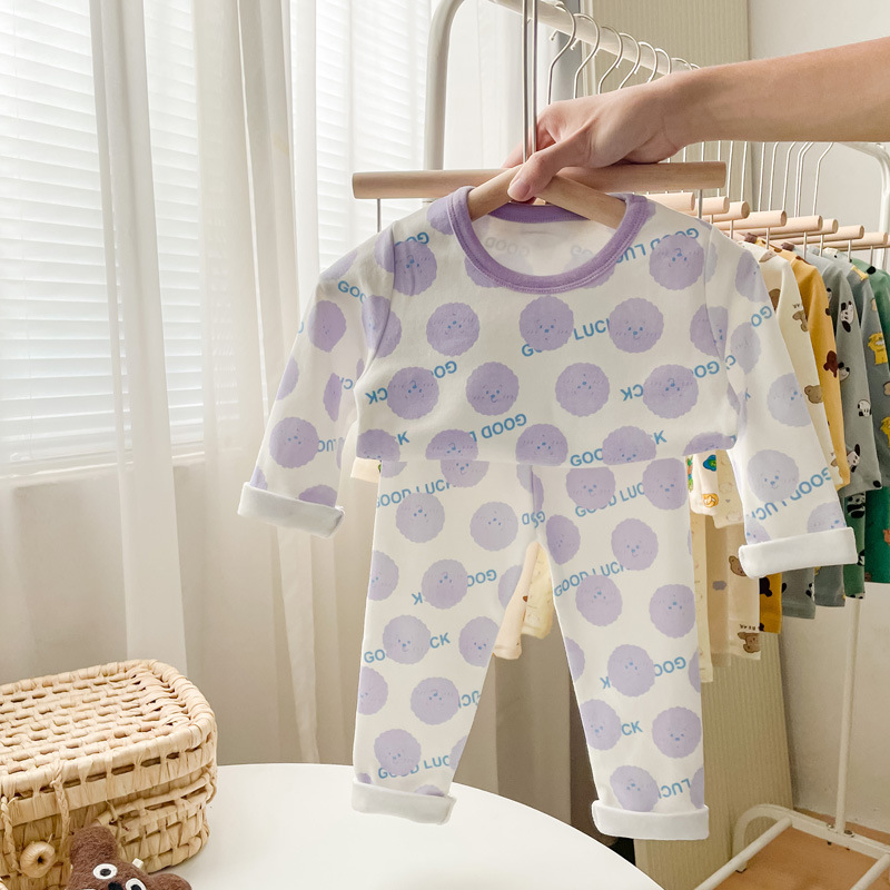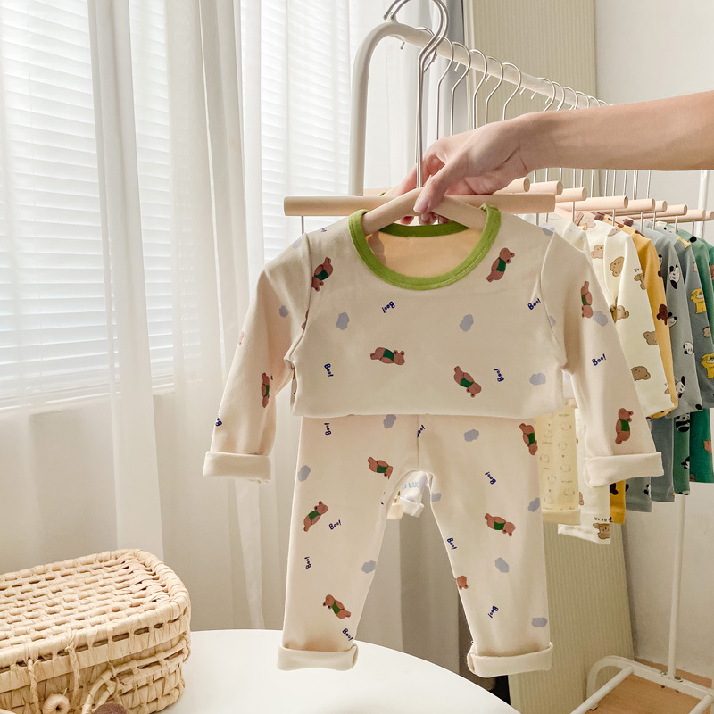 2023 가을과 겨울 새로운 두꺼운 소년과 소녀 귀여운 만화 캐주얼 속옷 가정 옷 어린이 가을 옷 가을 바지 세트스토어 가기